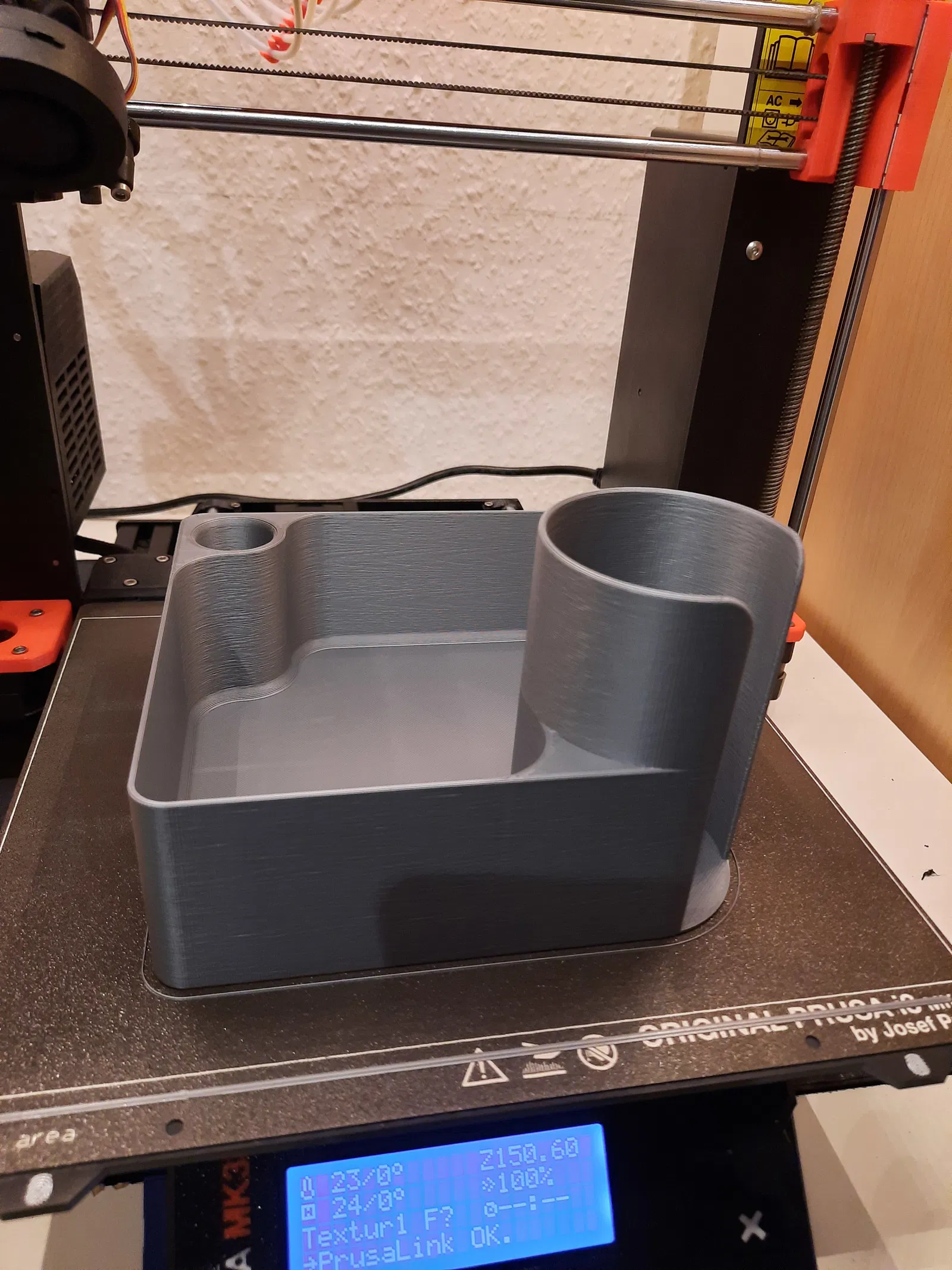 Đây là một mẫu khay đựng đồ nhà tắm được làm lại từ đầu, có thể dùng để cắm bàn chải, đựng bông tẩy trang hoặc đồ trang điểm. Mặc dù được làm lại, người tạo mẫu cho rằng đây không hoàn toàn là ý tưởng của mình.