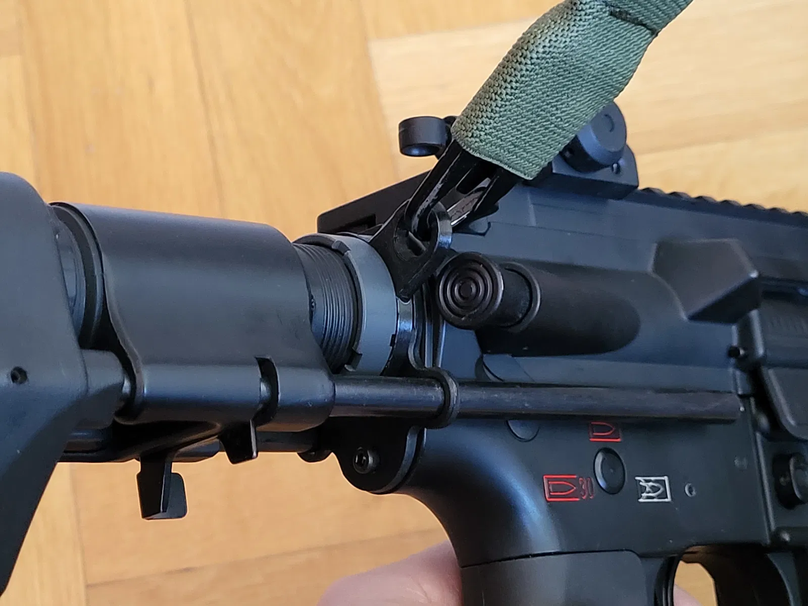 Tui làm cái móc đeo dây súng phía sau này cho mấy cây súng airsoft SA-H04 và SA-H07 của tui, mấy cây này là kiểu HK416C PDW đó.