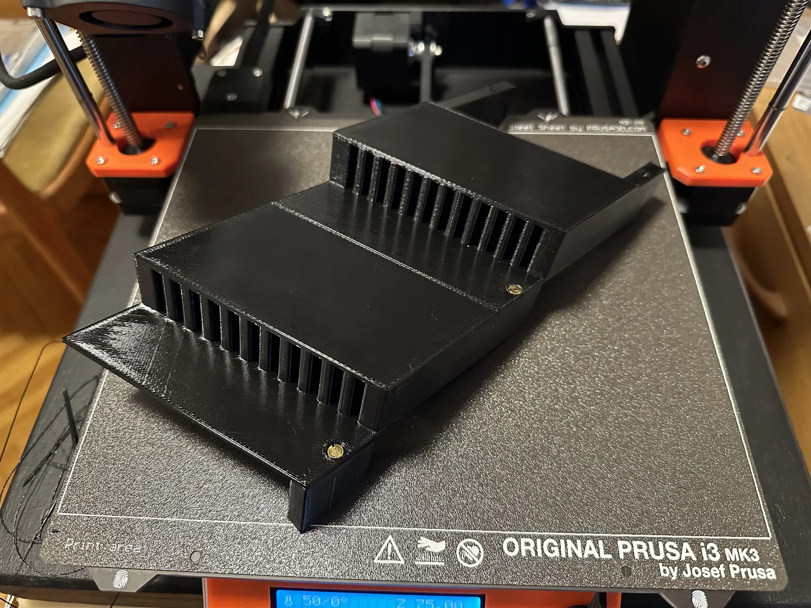 In trên máy MK3S+, nhựa PETG, cài đặt Prusa Slicer .30 DRAFT, 2 lớp vỏ (mặc định), không cần support.