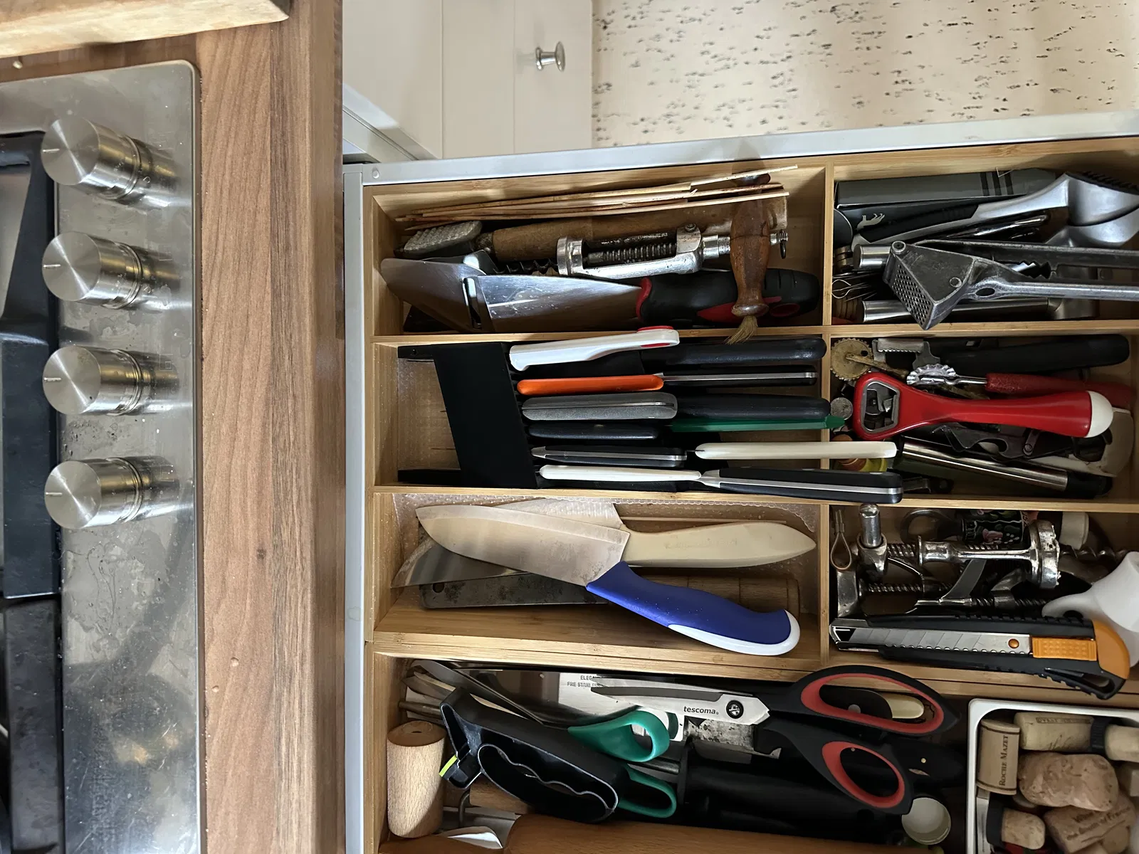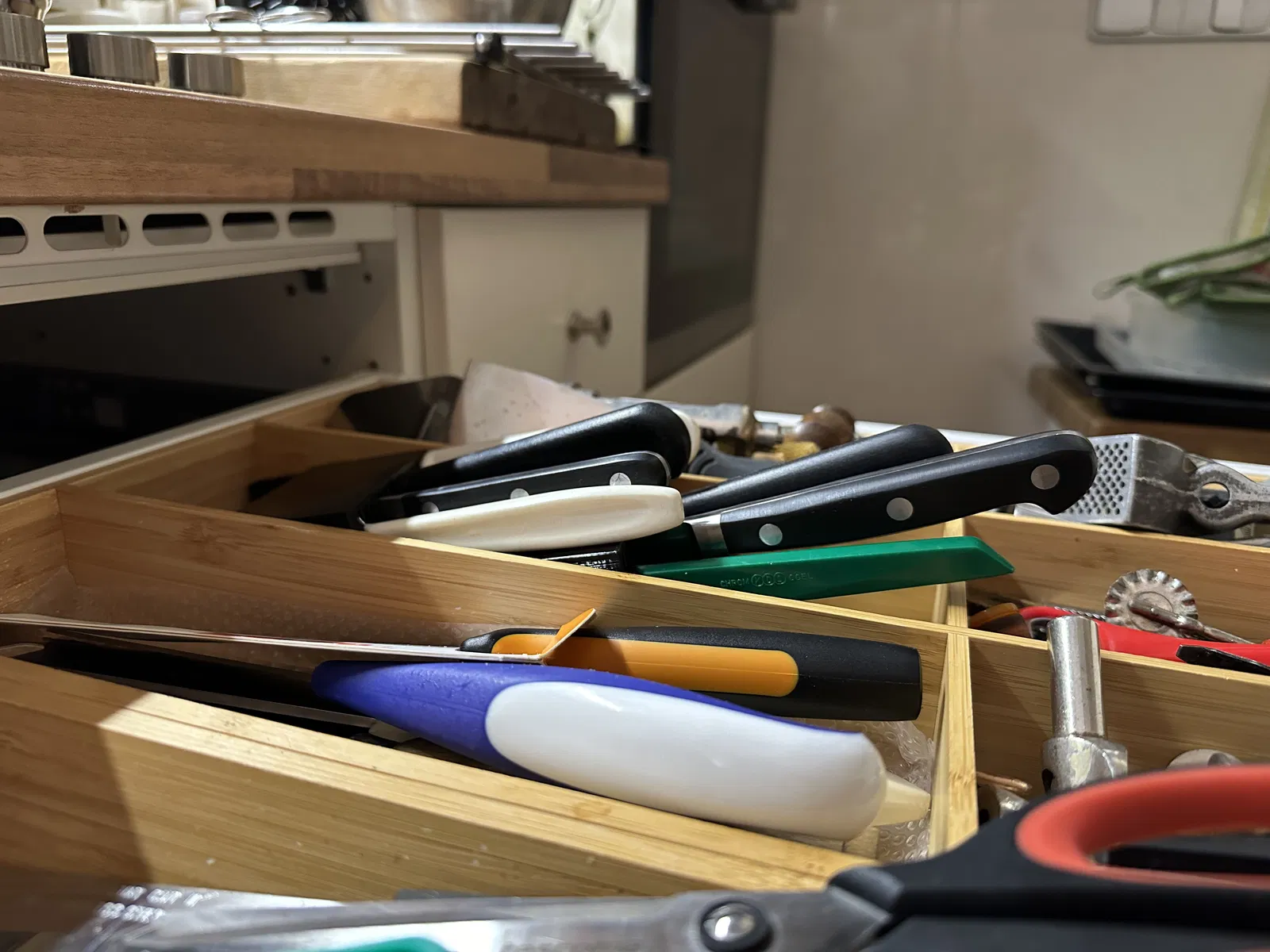 Thiết kế để đựng khoảng 12 con dao có lưỡi <150x20mm. Cần một khoảng trống phía trên UPPDATERA - ngăn kéo của tui có khoảng 65mm, xài ngon lành.