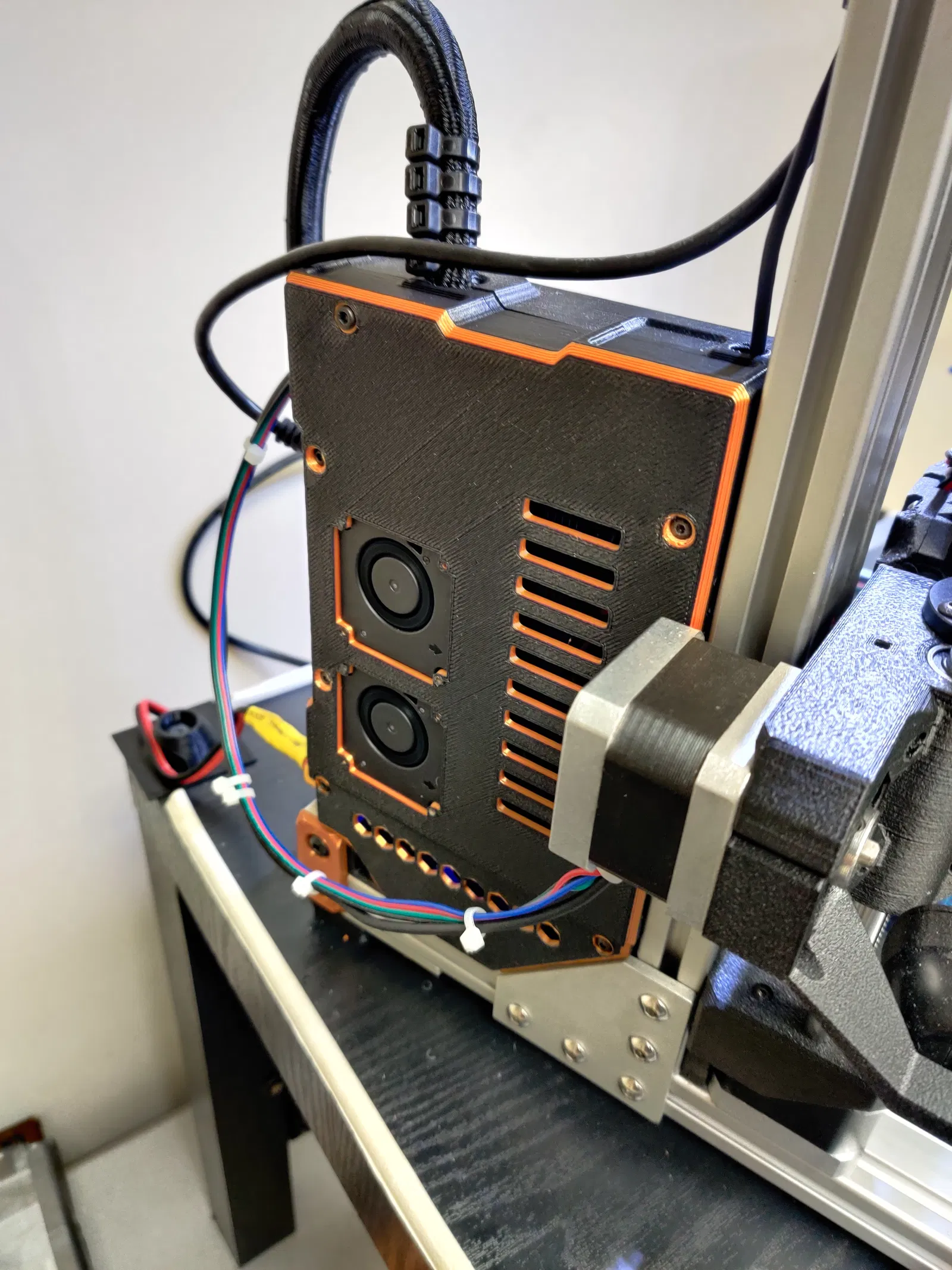 Bản phối lại của vỏ Universal SKR, bổ sung quạt thổi kép 4010 cho các động cơ bước. Thiết kế này giúp tản nhiệt hiệu quả hơn cho hệ thống điều khiển của máy in 3D, đặc biệt là các dòng SKR 1.X, đảm bảo máy hoạt động ổn định và bền bỉ hơn trong quá trình in ấn.