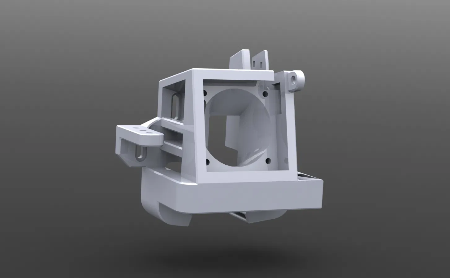 Tao mới gắn cái heat break bằng kim loại vô máy in, nó làm cái chiều dài đầu phun của tao thay đổi chút xíu nên tao phải kiếm cái quạt gió mới. Tao không tìm được cái nào ưng ý hết, nên tao kiếm cái gần giống nhất rồi tao chỉnh sửa lại.