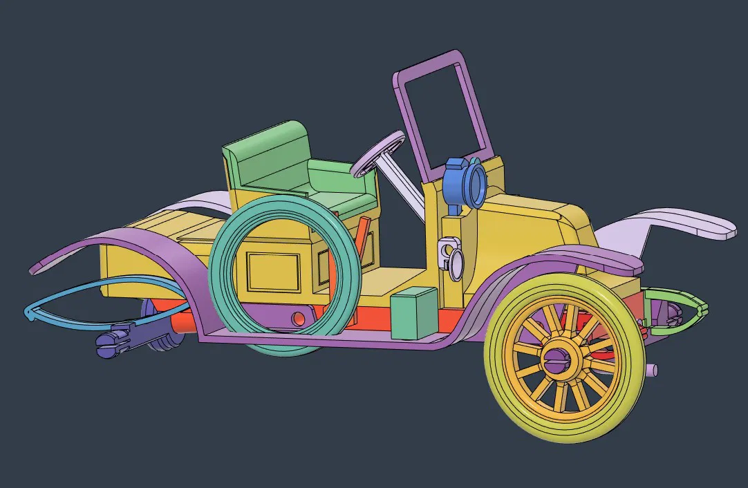 Mô hình xe Renault VI đời 1904 với khoảng cách trục bánh xe 60mm. Hướng dẫn in chi tiết với chất liệu PLA, đầu phun 0.4mm, lớp dày 0.2mm. Sử dụng lỗ lắp ráp 1.8mm và filament để dán. File G-code "14b và 15b" hỗ trợ in màu.