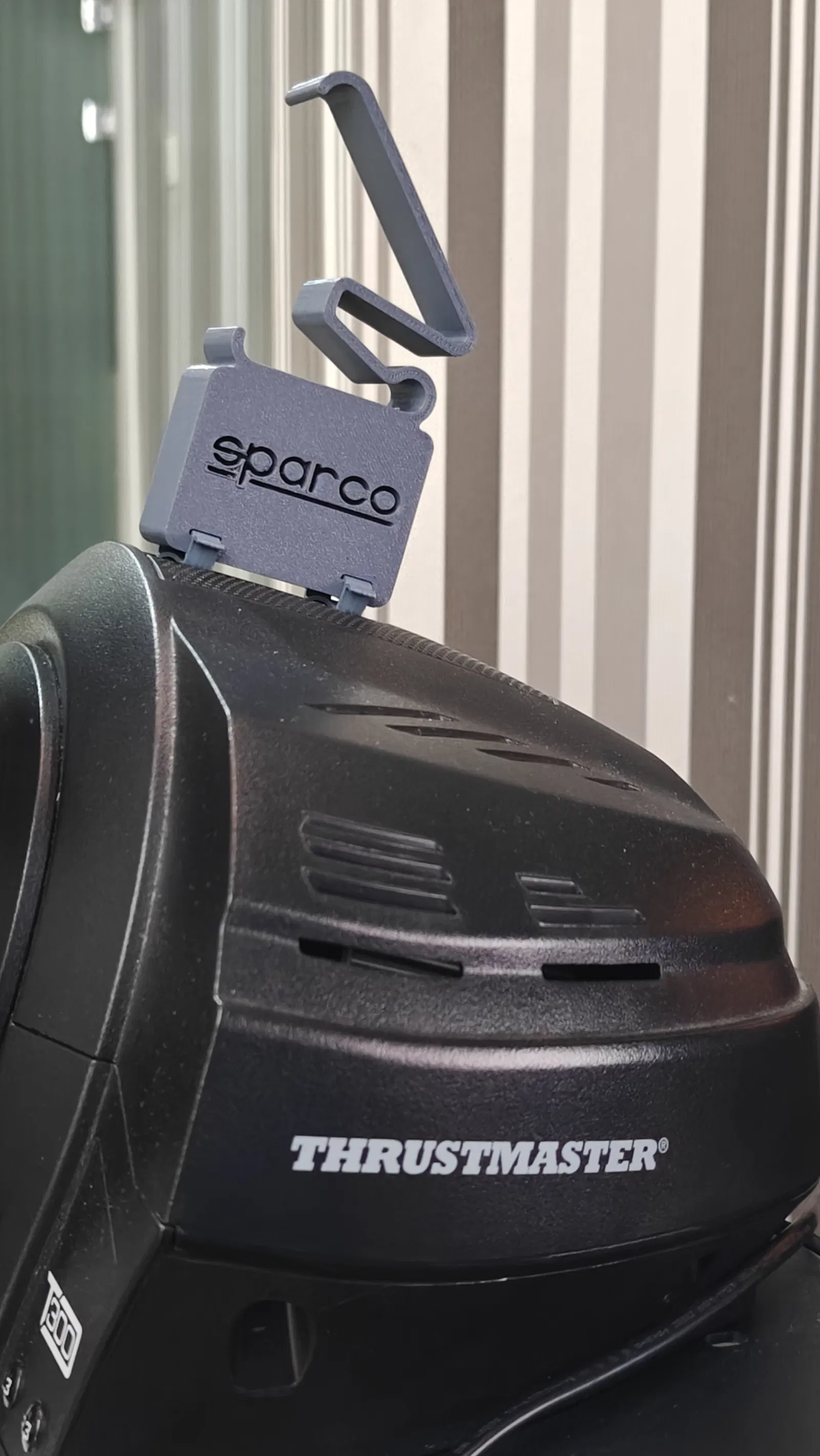 Giá đỡ điện thoại cho Bánh lái Thrustmaster T300 (RS) X Sparco R383. Thiết kế này được nâng lên 3,4cm để phù hợp với Bánh lái tỉ lệ 1:1. Sản phẩm này là phụ kiện không thể thiếu cho anh em đam mê simracing muốn gắn điện thoại lên vô lăng.