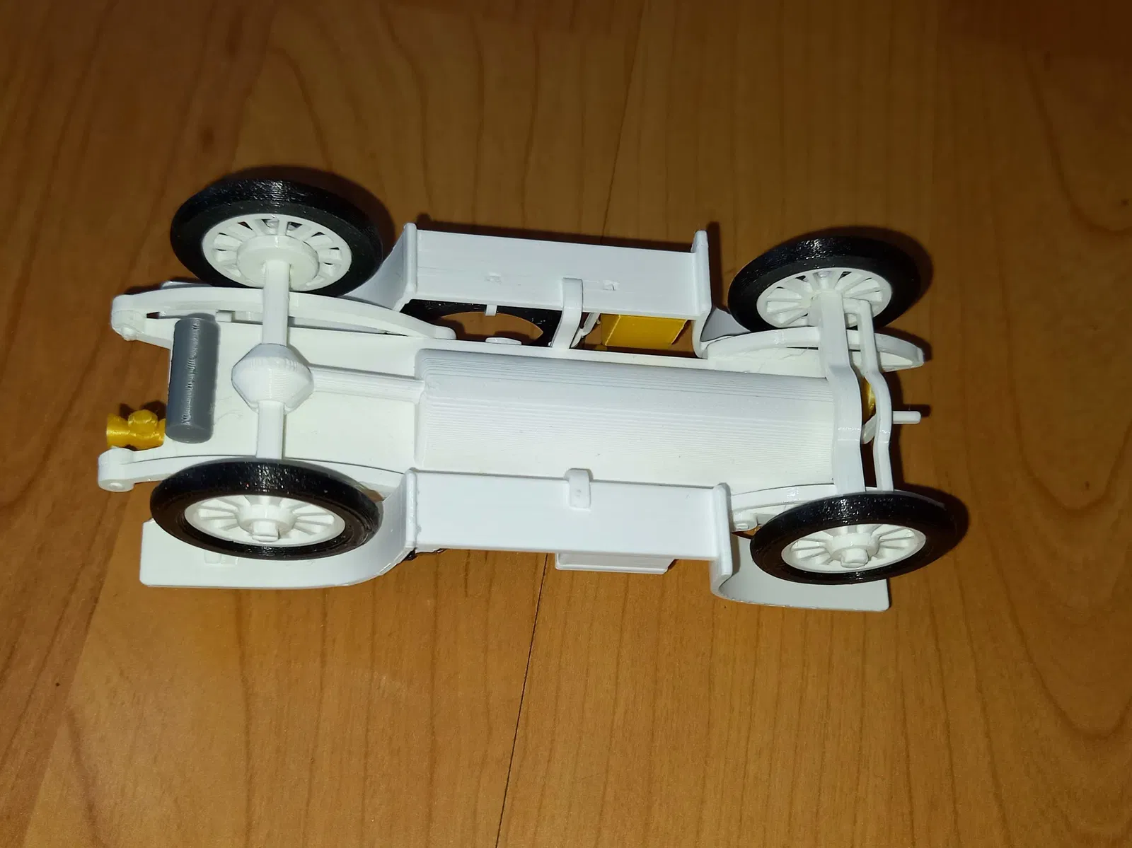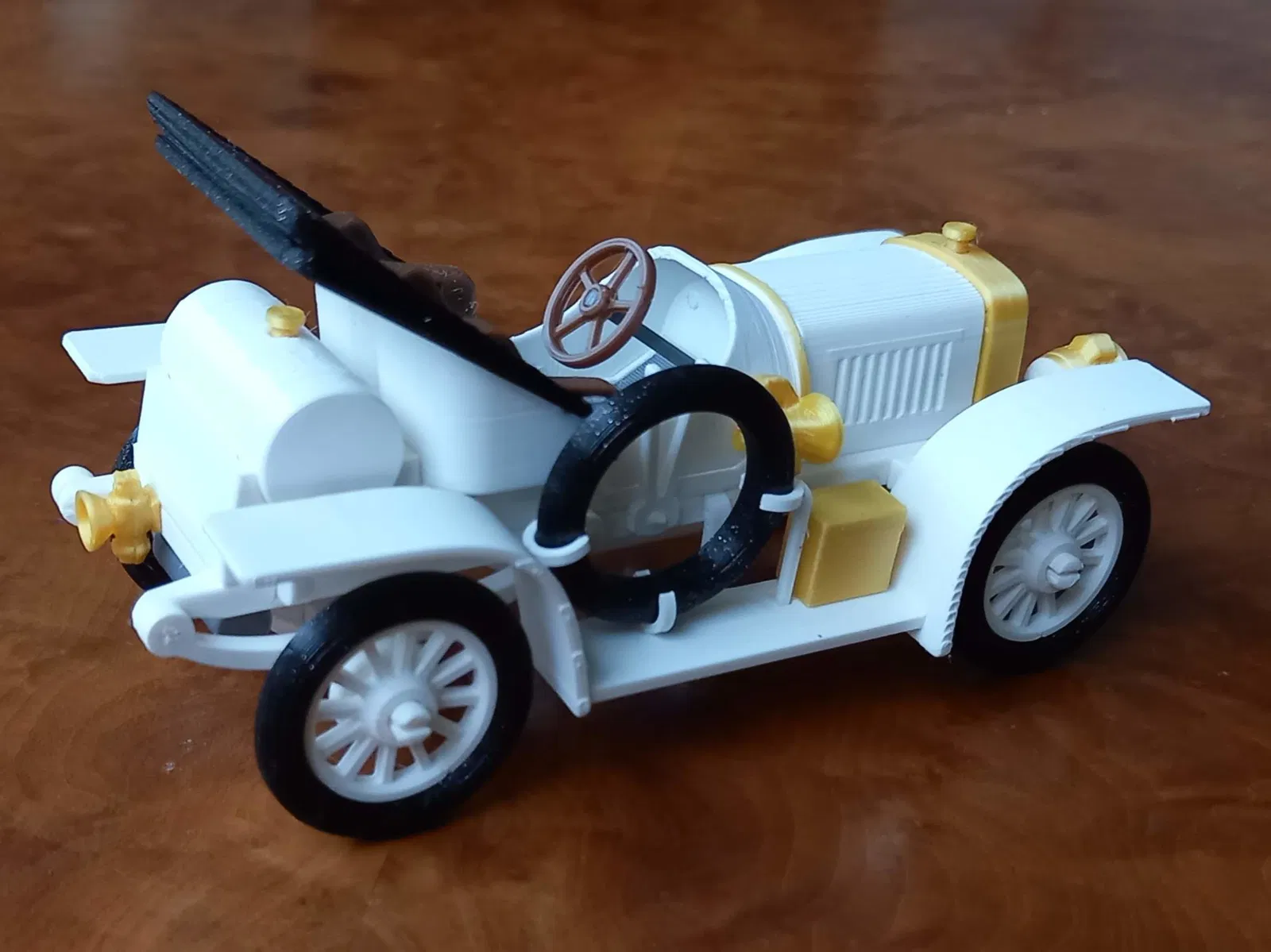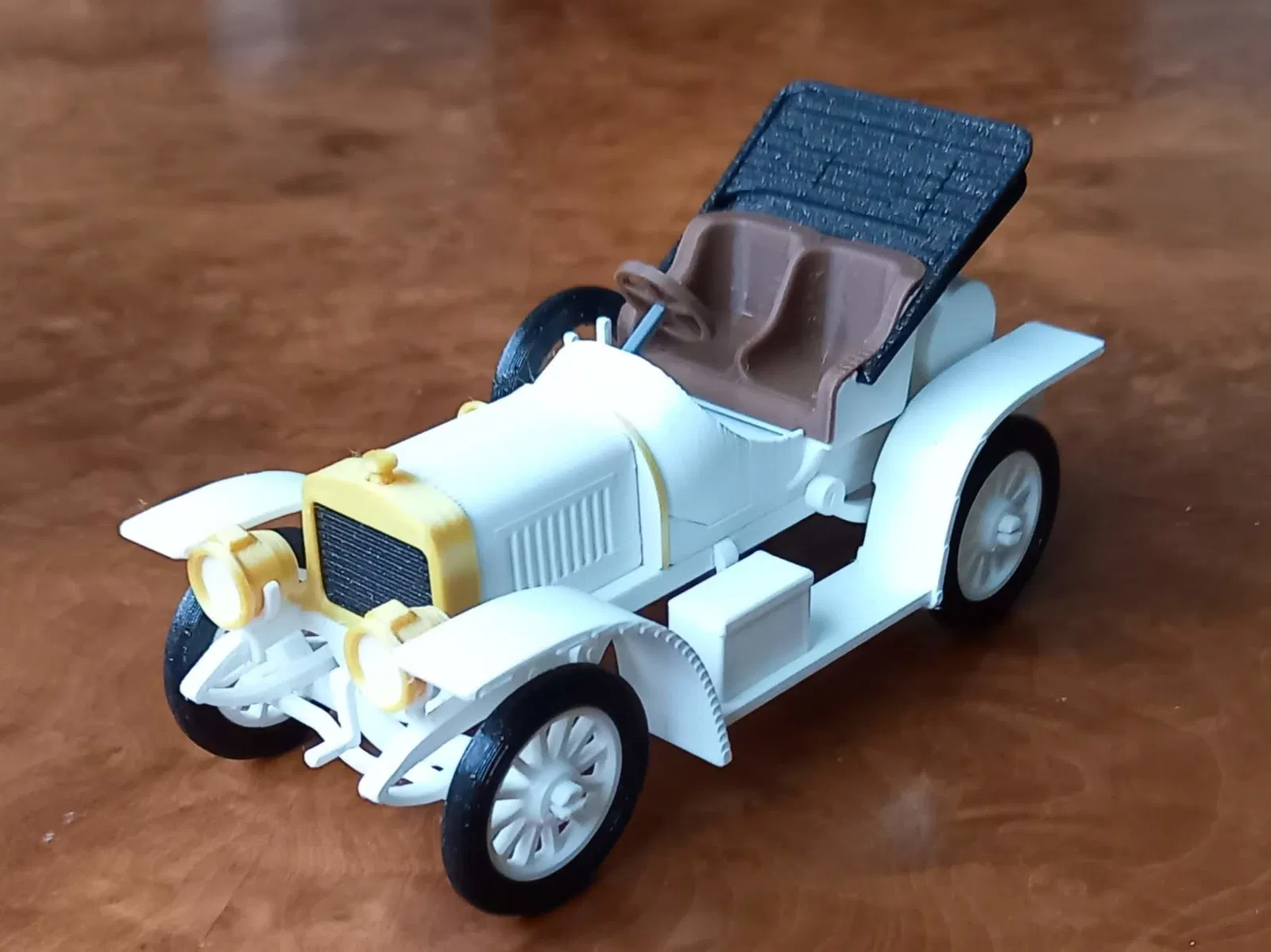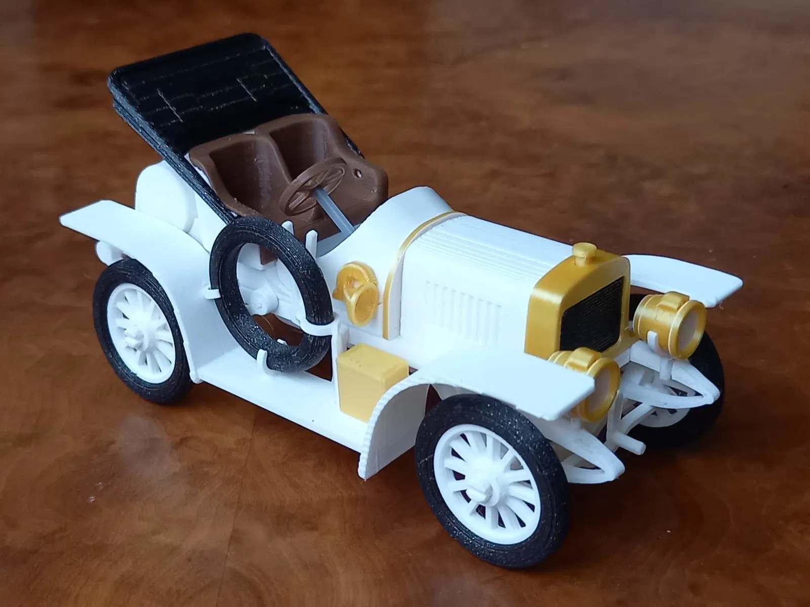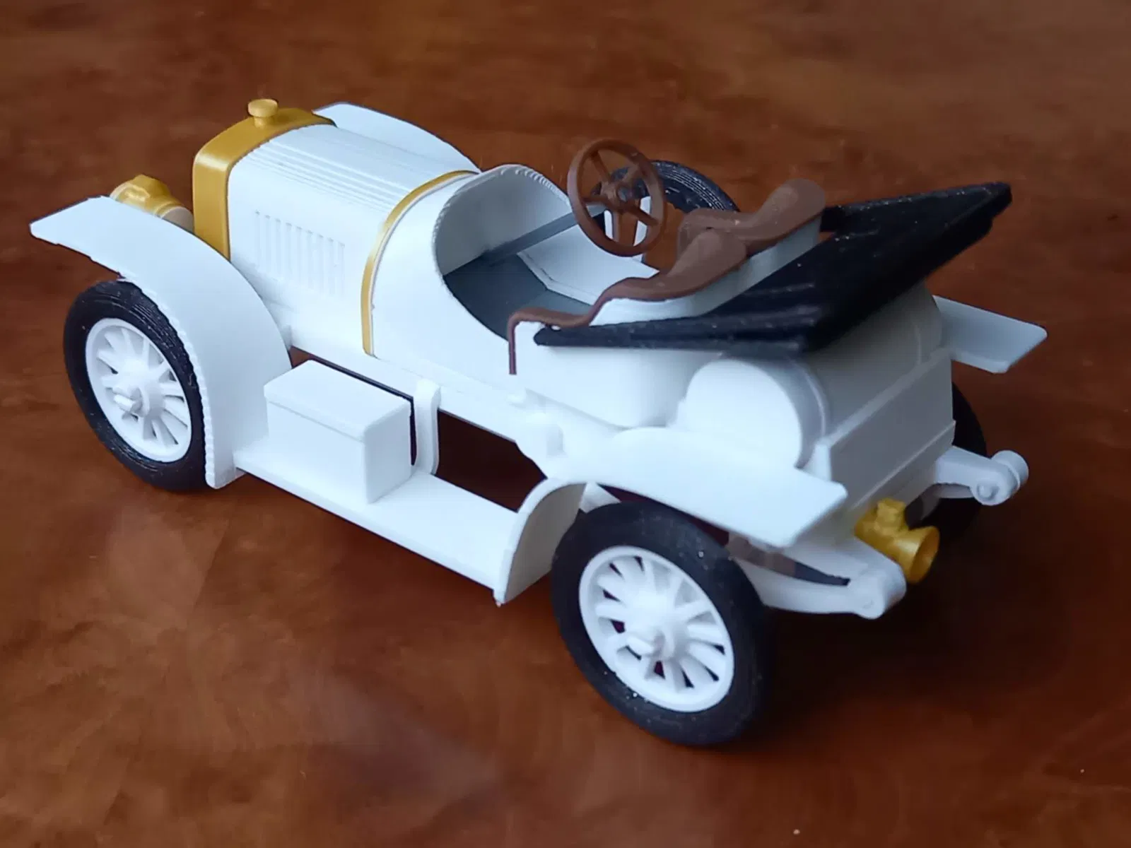 Mô hình xe Laurin&Klement BSC 1908, trục cơ sở 80mm. Thông số in: vật liệu PLA, đầu phun 0,4mm, lớp dày 0,2mm. Hướng dẫn chi tiết cách in và lắp ráp, bao gồm cả việc sử dụng các bộ phận hỗ trợ và kỹ thuật làm nóng để đạt độ chính xác cao nhất.