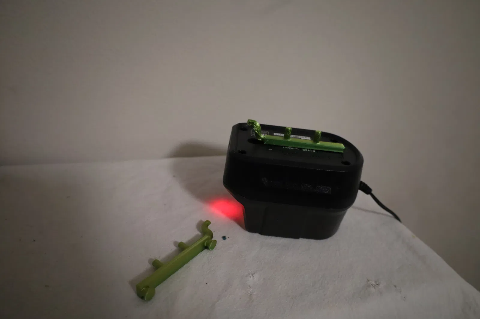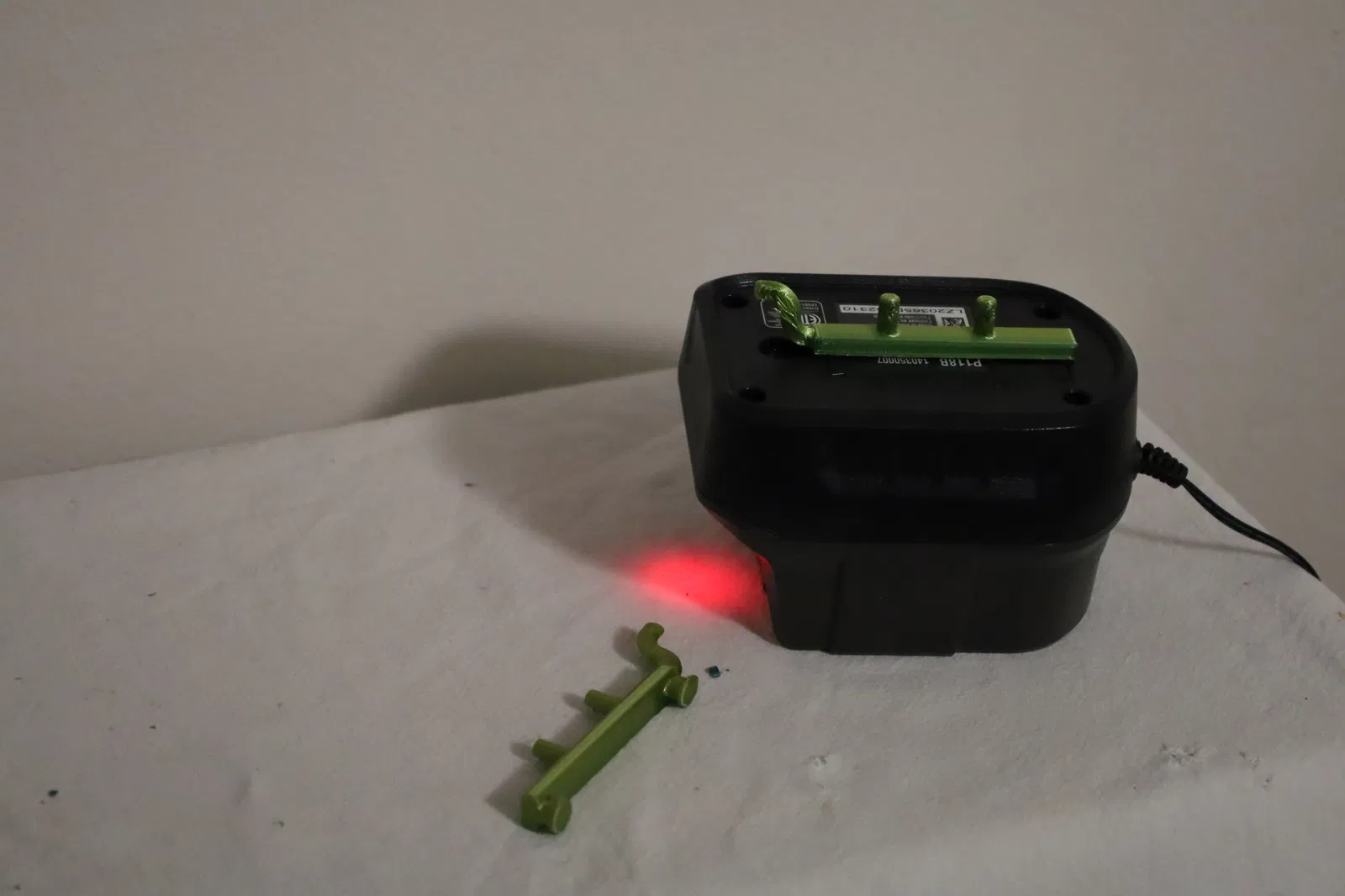 Độ bền của bộ phận này nhạy cảm với hướng in. Các chốt ở phía bộ sạc pin dễ bị gãy khi tách vật liệu support ra nếu in với các chốt ở dưới đáy. Tuy nhiên, ngay cả với hướng in này, chúng vẫn đủ chắc để giữ bộ sạc pin đúng vị trí ngay cả khi có pin lớn.