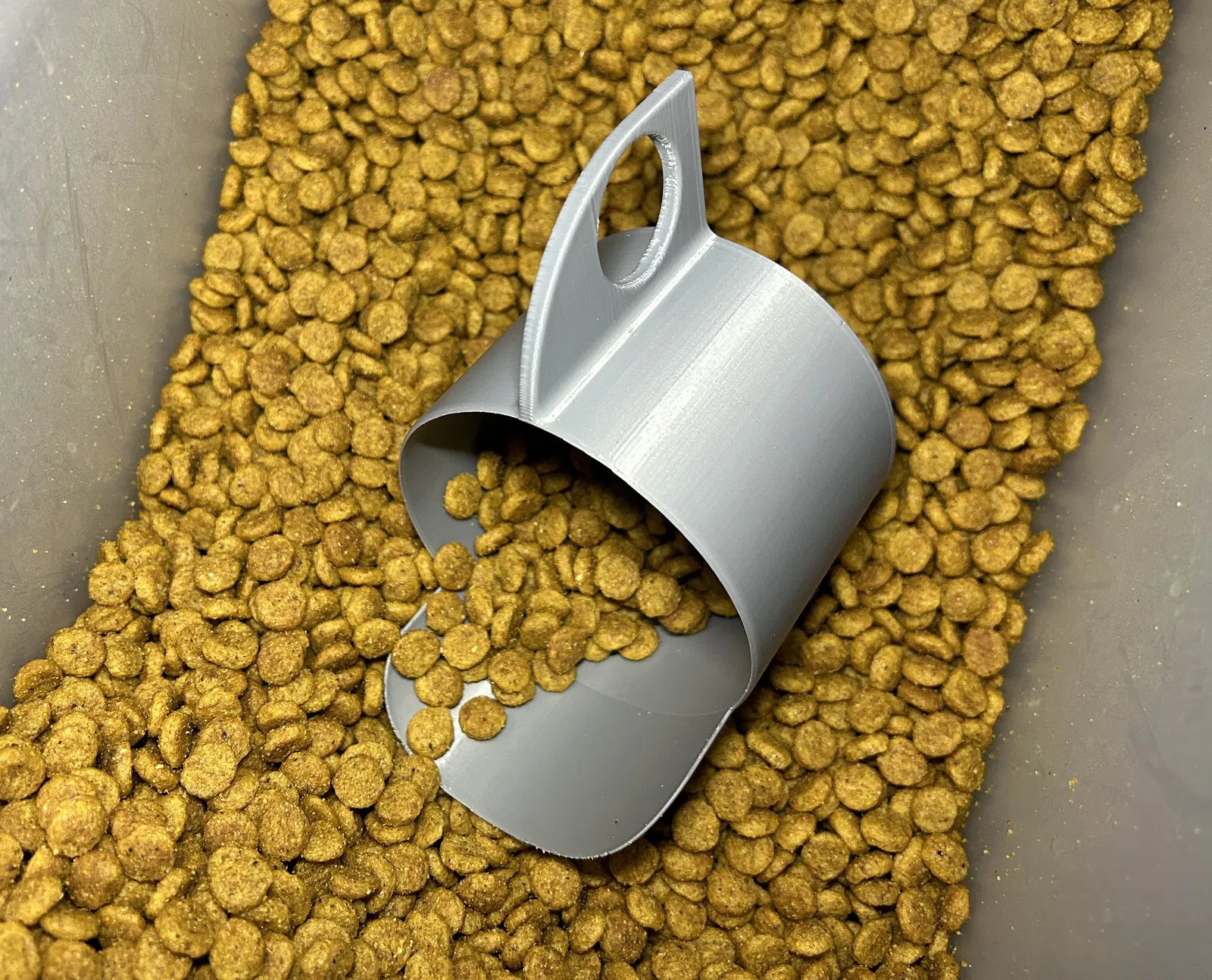 Chán xài ly cắt để đong thức ăn cho chó, tôi đã tự làm cái muỗng đong riêng. Có tay cầm và phần múc tiện lợi, in bằng PLA hoặc TPU, thể tích khoảng 1.25 Cốc Mỹ. Dùng ngon lành 6 tháng rồi!