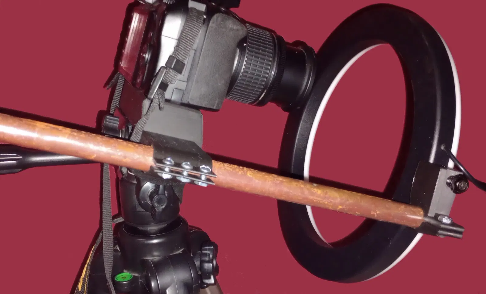 Bộ phận in 3D dùng để kết nối đèn ring light 10 inch với máy ảnh DSLR và chân máy Velbon S-6000. Thiết kế cho phép điều chỉnh đồng bộ, dễ dàng tháo lắp đèn. Bao gồm file .step để tùy chỉnh. Tương thích với ống/thanh tròn 16mm OD.
