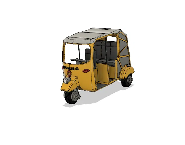 Mẫu xe lam vàng ba bánh có thể in theo ba cách khác nhau: nguyên khối, chín hoặc mười mảnh với các bộ phận chuyển động, hoặc tháo rời hoàn toàn. Tùy chọn in đa mảnh đi kèm file hướng dẫn lắp ráp và có thể cần ốc vít, keo dán. Mô hình được thiết kế rỗng ruột để tiết kiệm vật liệu in.