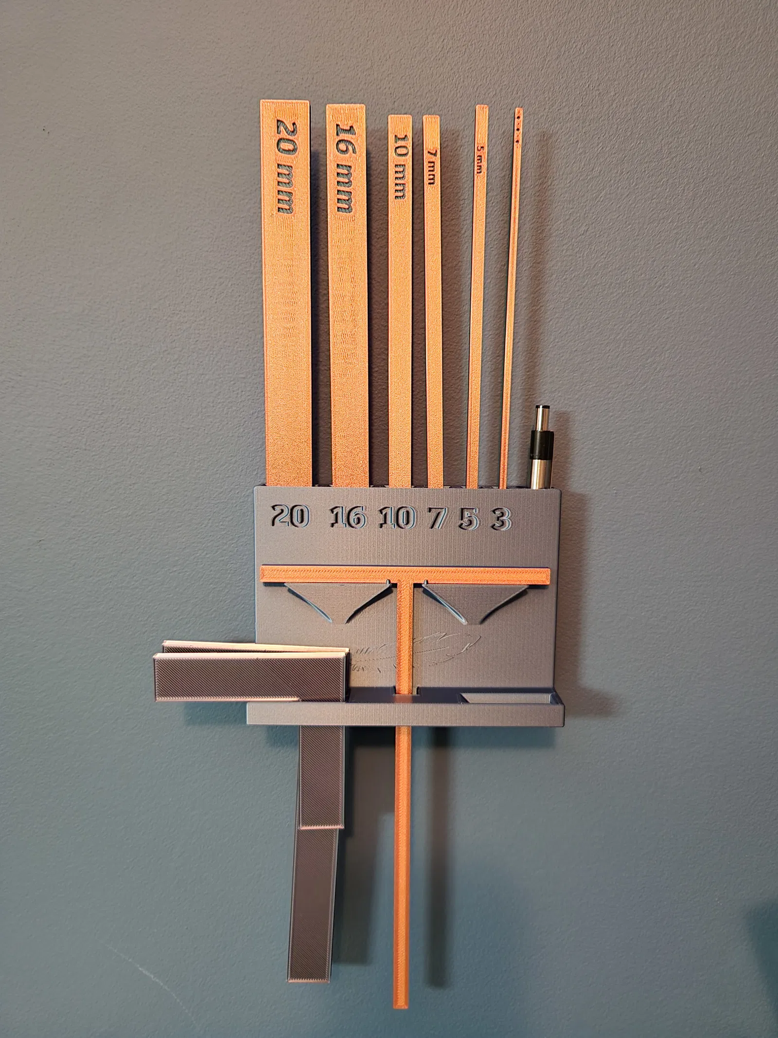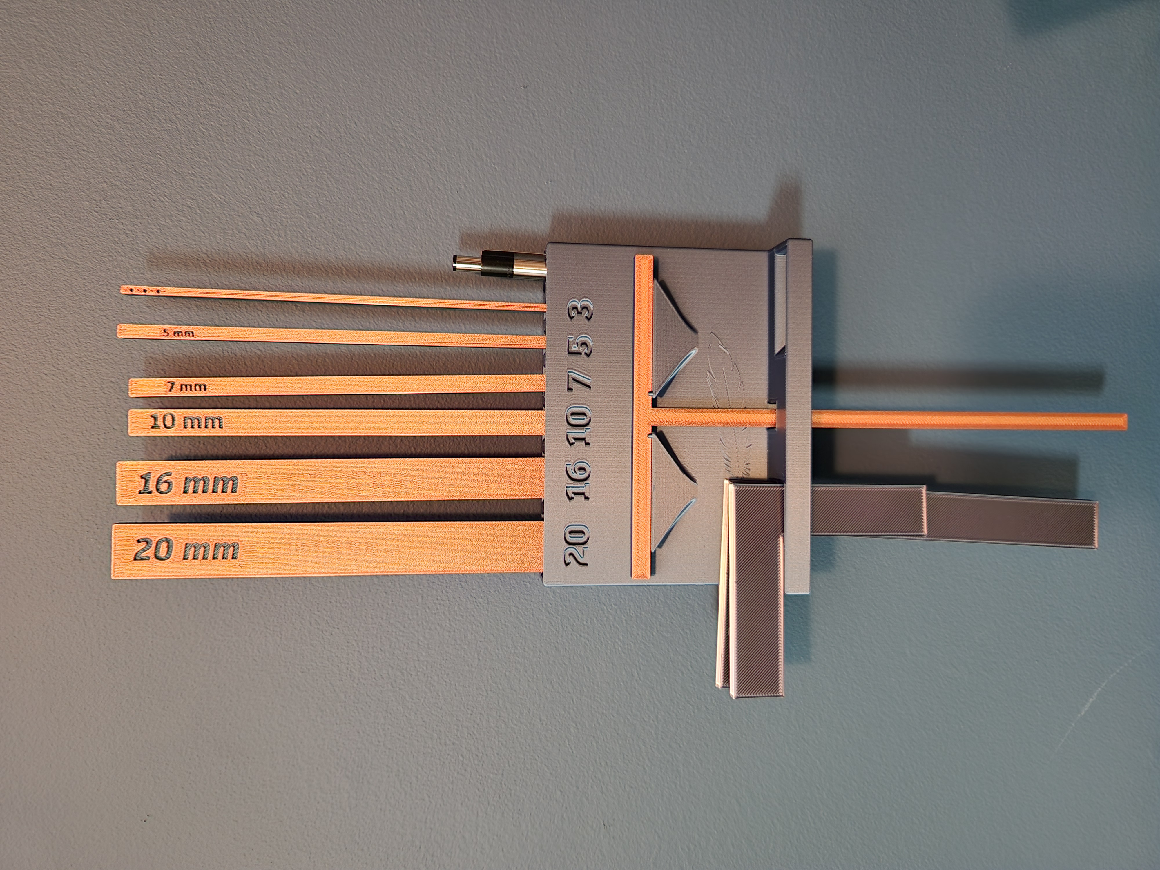 Một T-Spacer dùng để căn chỉnh bìa và gáy của bìa sách. Vợ mình có xài loại tương tự với trục dọc rộng 5mm, nhưng cô ấy thích cái nào có khoảng cách 7mm hơn về ngoại hình và chức năng… nên mình đã tạo ra cái này cho cô ấy để khỏi phải dùng đồ độ chế cho dụng cụ khác. Dùng đi nha! Gcode là cho PLA với một lần đổi màu sợi in sau khi đạt 1mm chiều cao.