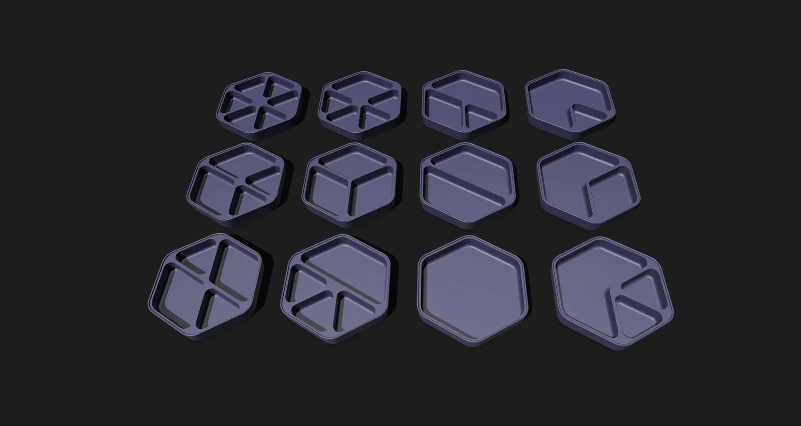 Khay đựng đồ chia ngăn dạng modul hình lục giác, bo tròn các cạnh, có thể xếp chồng lên nhau. Rất thích hợp để đựng các bộ phận nhỏ, linh kiện hoặc đồ lặt vặt, giúp không gian của bạn gọn gàng hơn.