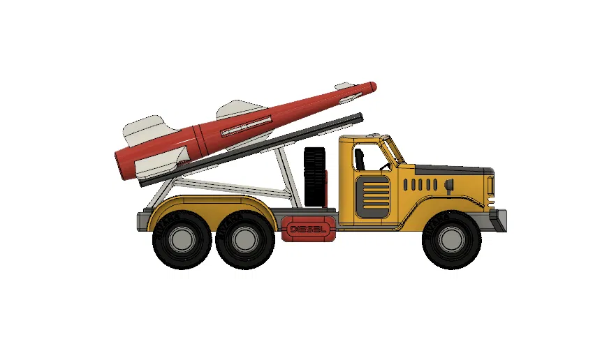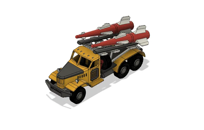 Mô hình Xe Tải Vận Chuyển Tên Lửa Màu Vàng với các bộ phận chuyển động. Có 3 tùy chọn in: một khối duy nhất (STL), nhiều bộ phận (3mf) cho chất lượng tốt nhất, hoặc kết hợp các bộ phận theo ý muốn. Mô hình có bánh lái và nắp khoang động cơ mở được.