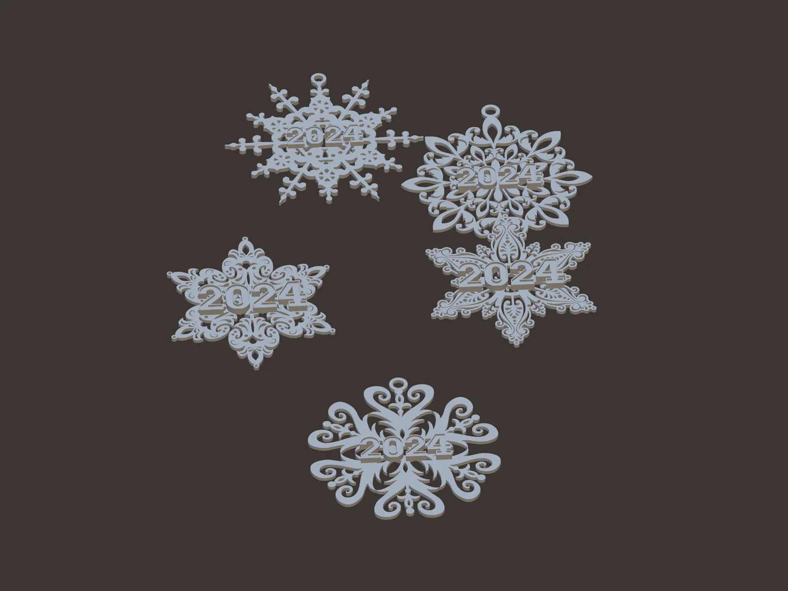 Mẫu bông tuyết có in chữ 2024 ở mặt trước, một vật trang trí Giáng Sinh độc đáo, mang không khí lễ hội đến cây thông nhà bạn.