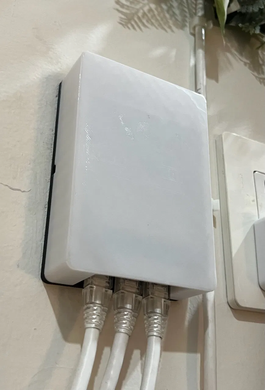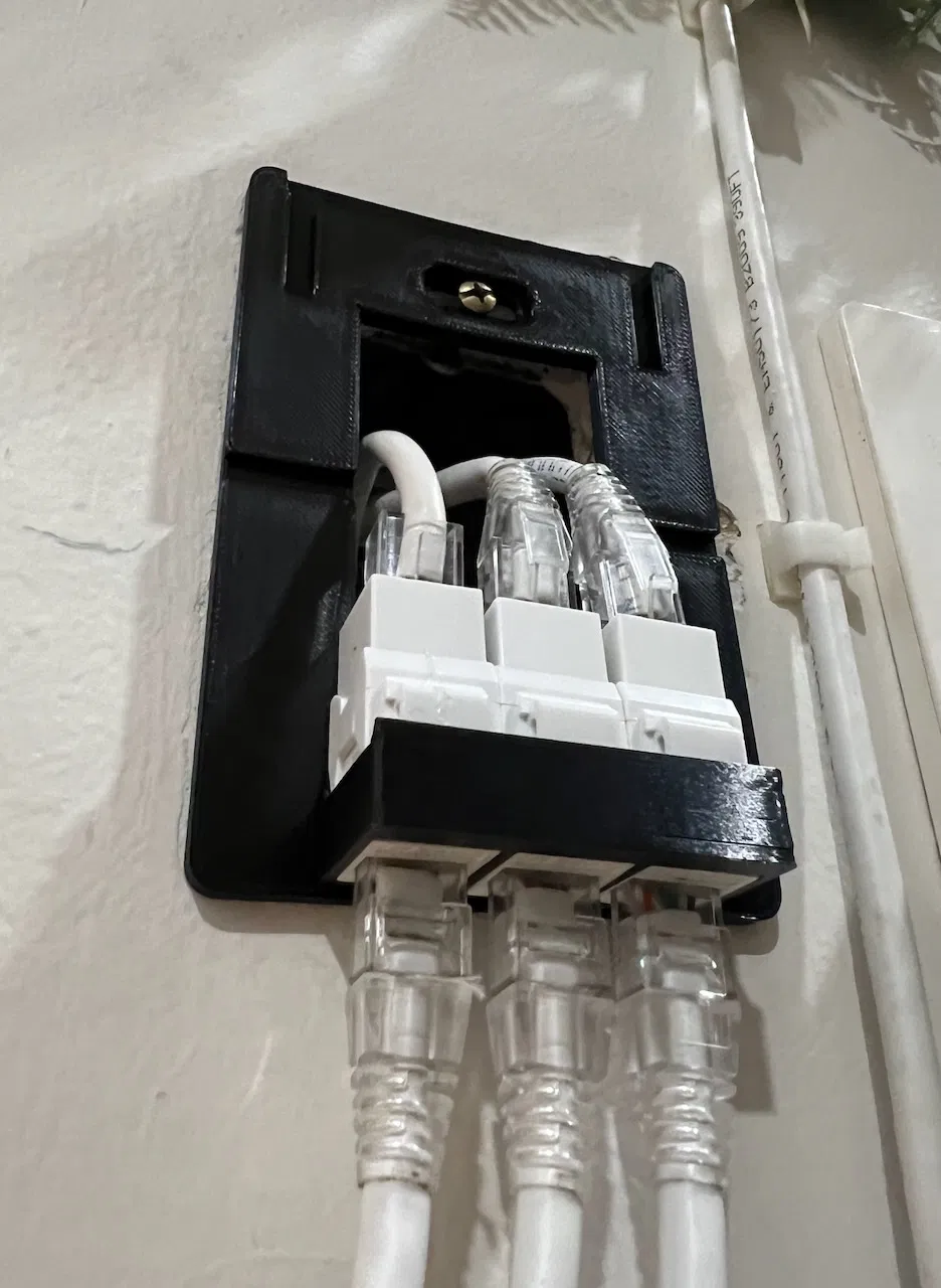 Một đế tường nhỏ gọn, gắn trên tường, có chỗ cho 3 keystone. Thích hợp để gắn 3 cổng ethernet lên tường nhà bạn. Sản phẩm được in bằng PLA hoặc PETG, không cần support.