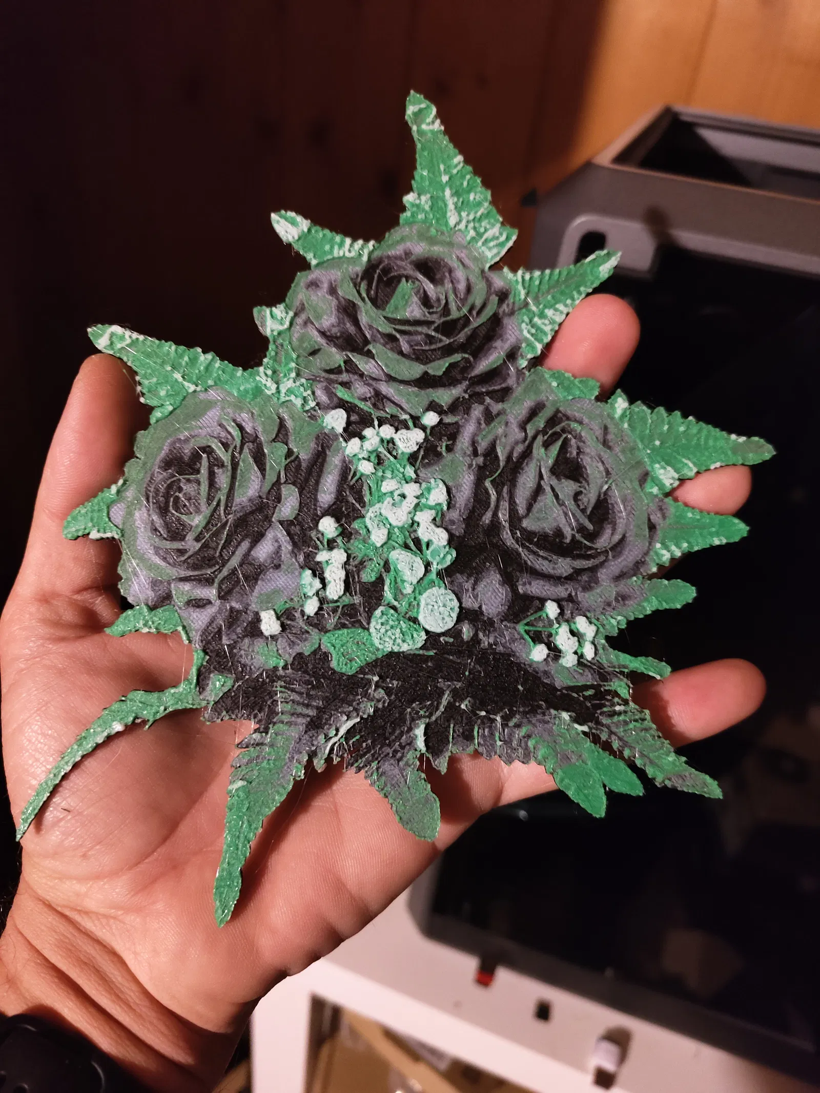 Filaments Used: PLA Generic Black Transmission Distance: 0.3 PLA Generic Gray Transmission Distance: 2.5 PLA Generic Green Transmission Distance: 2 PLA Generic White Transmission Distance: 6