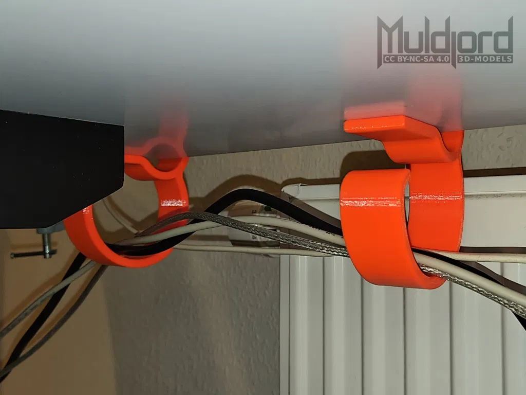 Cái kẹp này giúp quản lý dây cáp gọn gàng bên dưới bàn làm việc của bạn. Chỉ cần in 3-4 cái và kẹp chúng vào mặt bàn từ phía sau. Không cần ốc vít. Đo độ dày mặt bàn bằng thước cặp, rồi slice và in cái kẹp tương ứng. **Hướng dẫn in:** * Các file STL cho độ dày bàn từ 15mm đến 40mm đã được cung cấp * Bắt buộc 10 lớp ngoại vi (perimeters) trở lên khi slicing! * Khuyến nghị in ở độ cao lớp 0.30mm * Khuyến nghị dùng nhựa PETG **Lưu ý khác:** Tập tin Blender đã được cung cấp cho những ai thích vọc vạch.