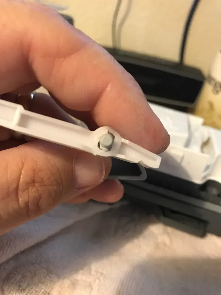 Hóa ra, cánh tay giữ lò xo và được kích hoạt bởi solenoid của cửa đựng chất tẩy rửa đã bị mòn.