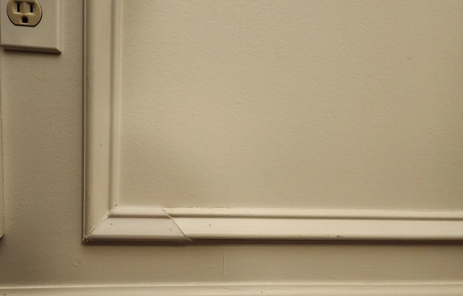 Do một lý do nào đó mà chủ nhà cũ đã bỏ quên mất khoảng 5cm phần nẹp tường của một mảng tường trong phòng ăn - và tôi không tìm được chỗ nào bán loại nẹp giống vậy. Để mọi chuyện tệ hơn, các mép được cắt ở góc 45 độ như thể chúng được cắt vát để ghép lại, nhưng thay vào đó lại chỉ để lơ lửng.