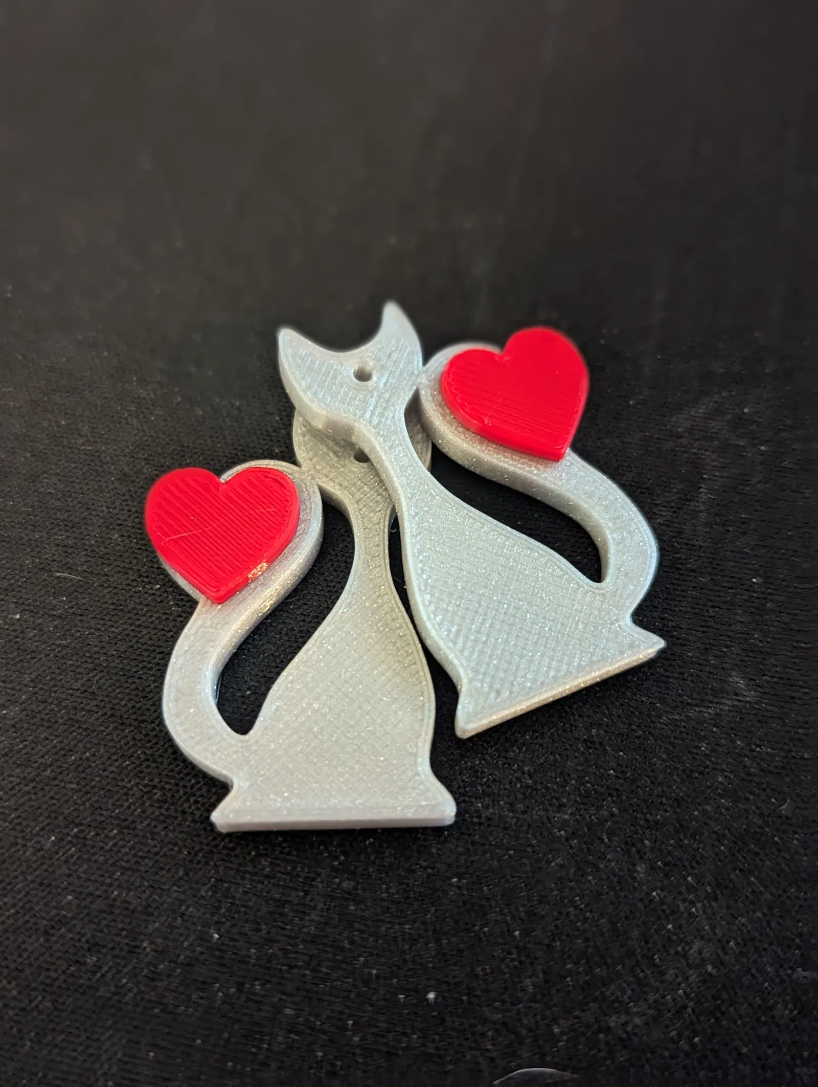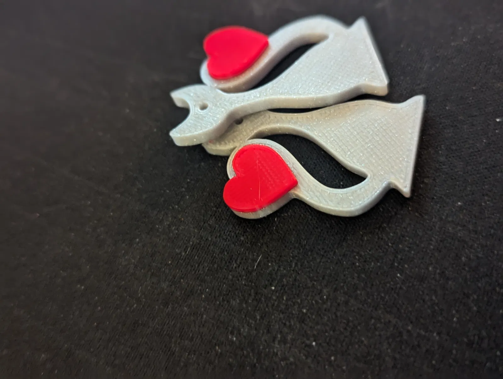 Bông tai dễ thương hình mèo ôm trái tim, được tối ưu hóa cho việc in 2 màu thủ công. Phần mềm Prusaslicer có thể tự động thêm bước đổi vật liệu khi cắt lát.