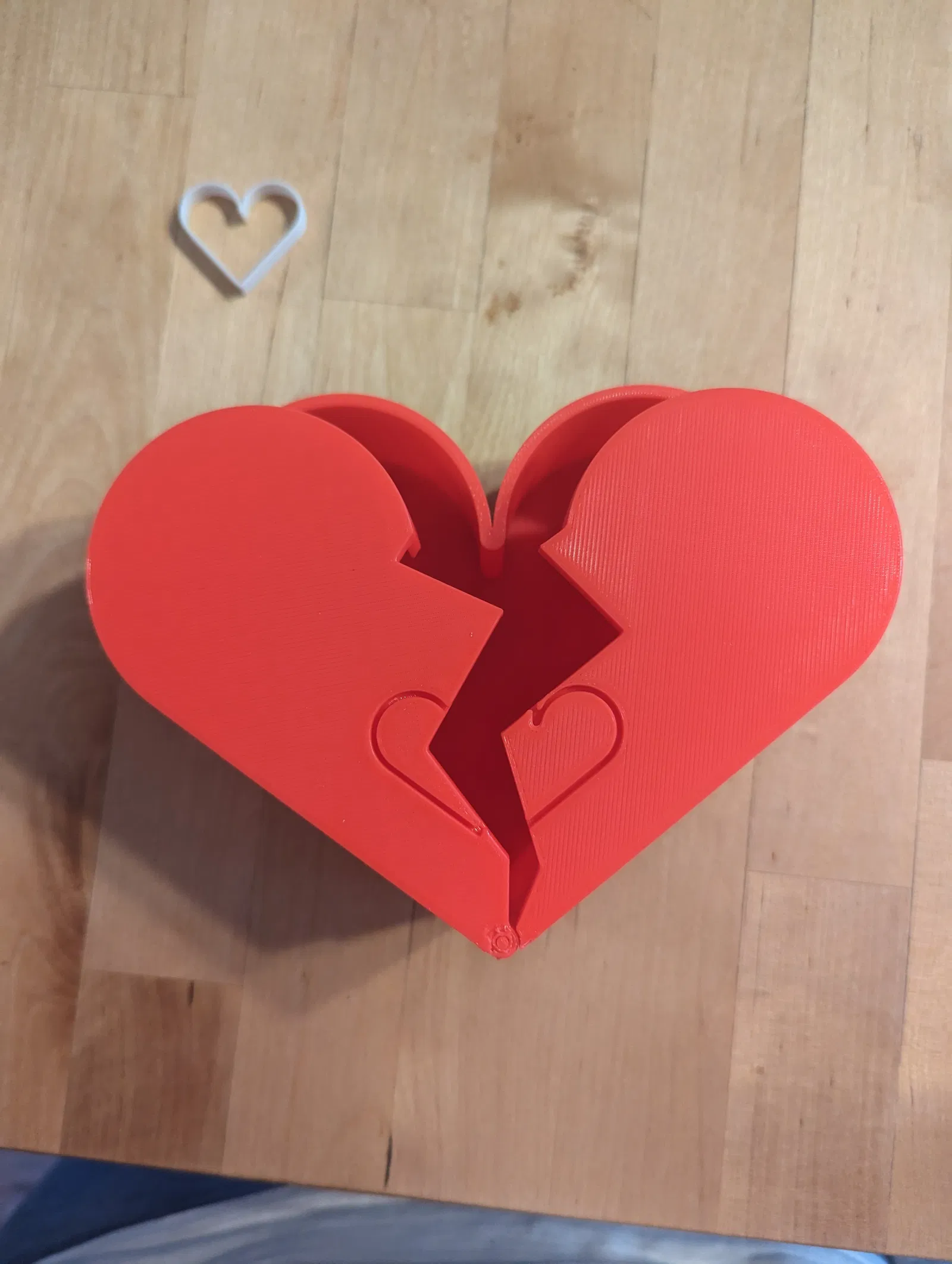 Chiếc Hộp Kỷ Vật Trái Tim Chữa Lành là một thiết kế độc đáo và giàu ý nghĩa, hoàn hảo để cất giữ những kỷ vật quý giá hoặc quà tặng. Thân hộp hình trái tim và nắp hộp, chia đôi như một trái tim tan vỡ, gợi lên cảm xúc yêu thương và mất mát. Nắp hộp có hai mảnh xoay từ đáy, giúp dễ dàng tiếp cận những gì bên trong. Khi đóng lại, một trái tim nhỏ hơn khớp chặt vào rãnh hình trái tim bên trong hai mảnh nắp, giữ cho hộp được đóng kín. Thiết kế này không chỉ thiết thực mà còn là một món đồ trang trí ý nghĩa và đẹp mắt cho mọi bộ sưu tập.