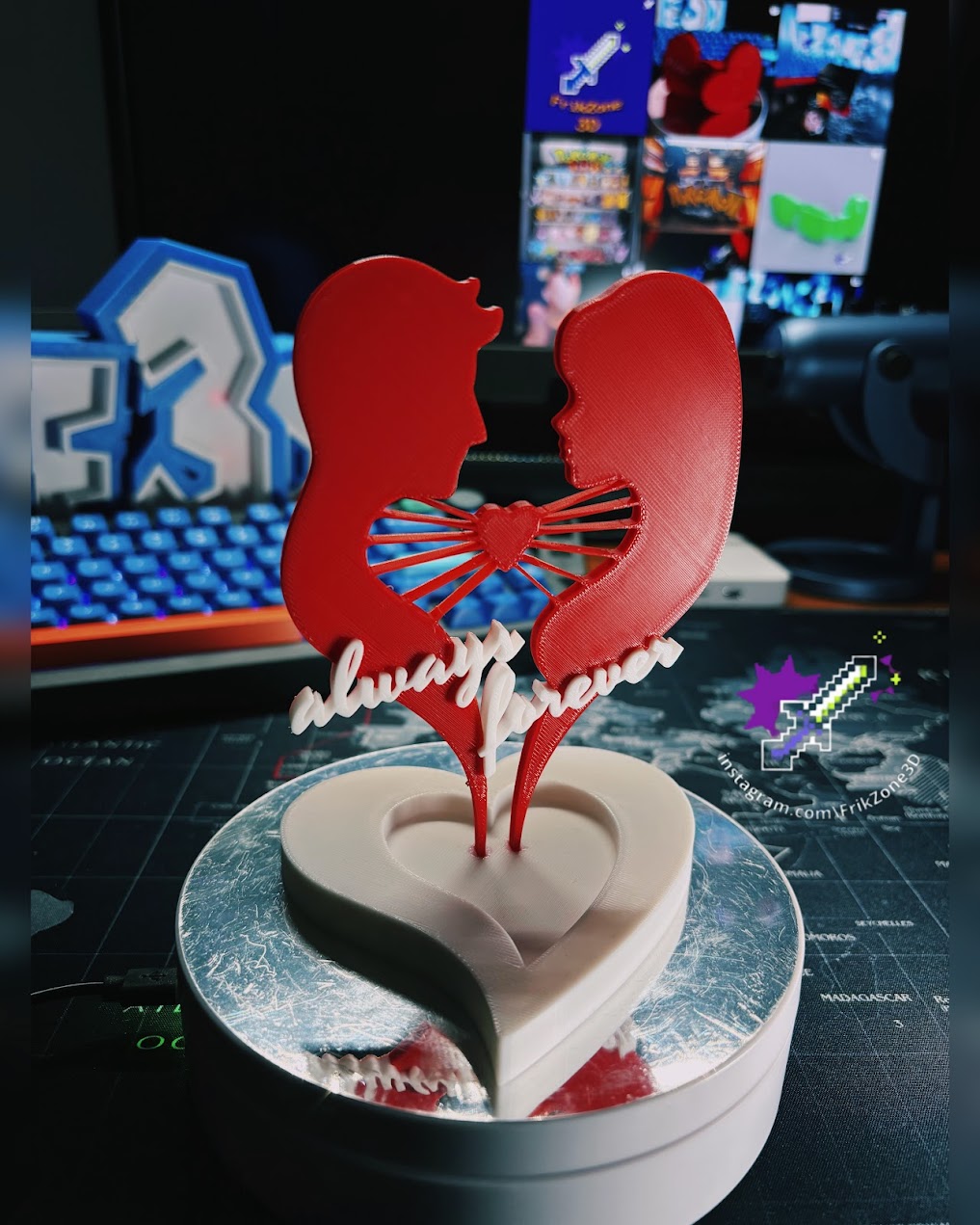 Tôn vinh tình yêu mùa Valentine này với "Silueta Amor Eterno" (Bóng Hình Tình Yêu Vĩnh Cửu), một mô hình 3D mang tính biểu tượng, khắc họa bản chất của một mối liên kết bền chặt. Được thiết kế với tất cả đam mê và sáng tạo, mô hình này giới thiệu hình bóng của một người đàn ông và một người phụ nữ, ánh mắt họ dõi theo nhau trong khoảnh khắc kết nối thuần khiết, với một trái tim được chạm khắc tinh xảo nối liền họ lại. Thật hoàn hảo cho một món quà lãng mạn hoặc như một tác phẩm nghệ thuật để kỷ niệm tình yêu, mô hình này hiện thân cho những lời "Luôn luôn" và "Mãi mãi" trong thiết kế của nó, nhắc nhở chúng ta về tính chất vượt thời gian của tình yêu đích thực.
