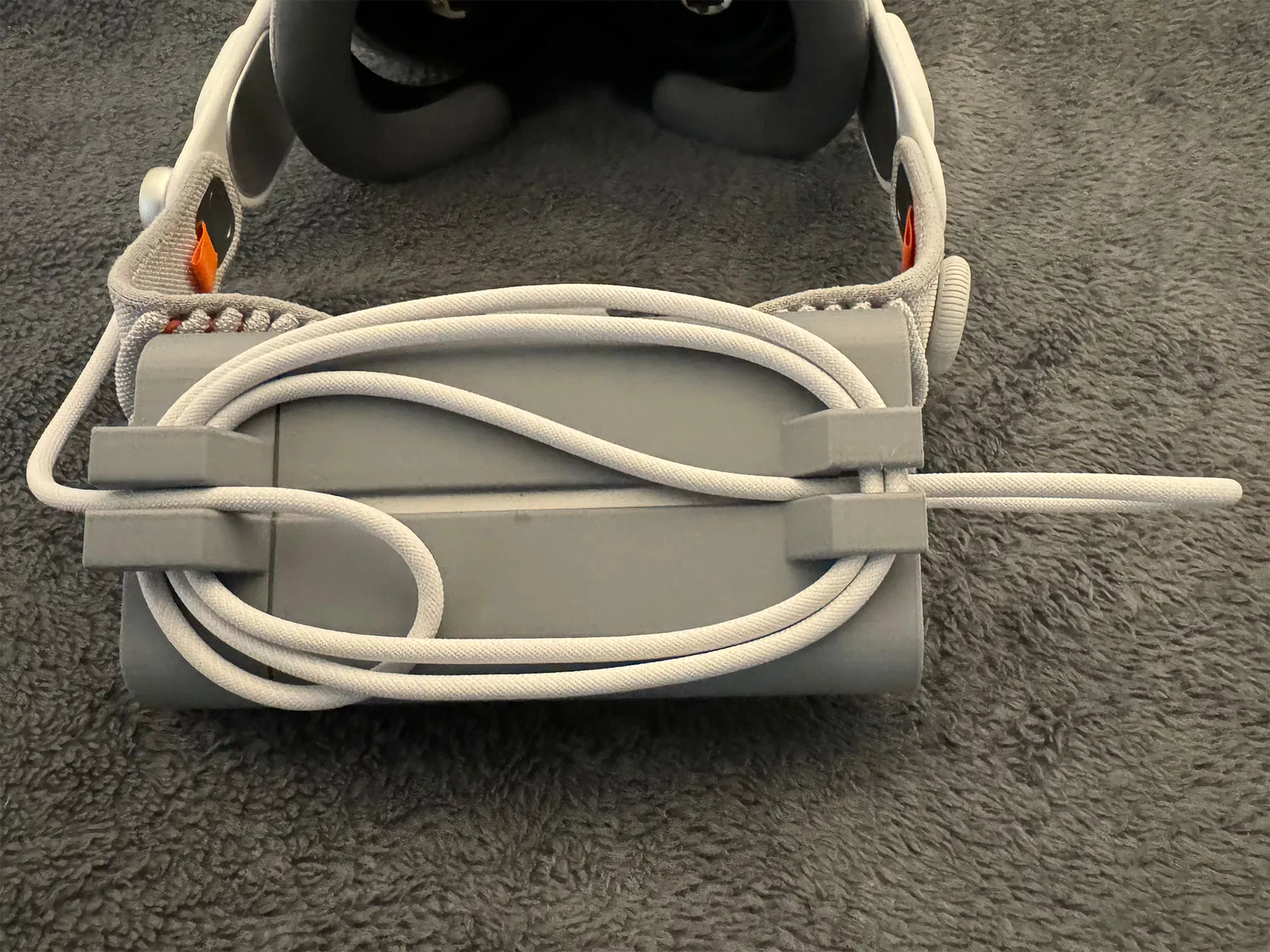 Chiếc Vision Pro hơi mất cân bằng khi đeo trong thời gian dài, nên khi gắn cục pin vào phía sau, nó sẽ cân bằng hơn và giảm trọng lượng cảm nhận trên mặt. Nó cũng tiện lợi để di chuyển mà không lo dây cáp bị vướng.
