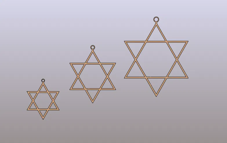 Tạo hình Ngôi Sao David với 3 kích cỡ khác nhau: 89, 127 và 176mm, có sẵn lỗ để treo. Thích hợp làm đồ trang trí Giáng sinh, cửa sổ hoặc cho dịp Hanukkah. In dễ dàng chỉ trong khoảng một giờ!