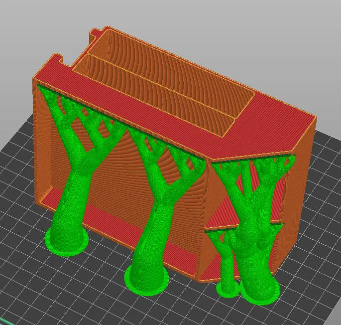 Phần mềm: PrusaSlicer 2.7.1 Lòng trong (Infill): 15% Vành (Brim): Không Chân váy (Skirt): Không Chống đỡ (Support): Có, cho phần thân chính Chiều cao lớp: 0.2 mm Chất liệu: PLA