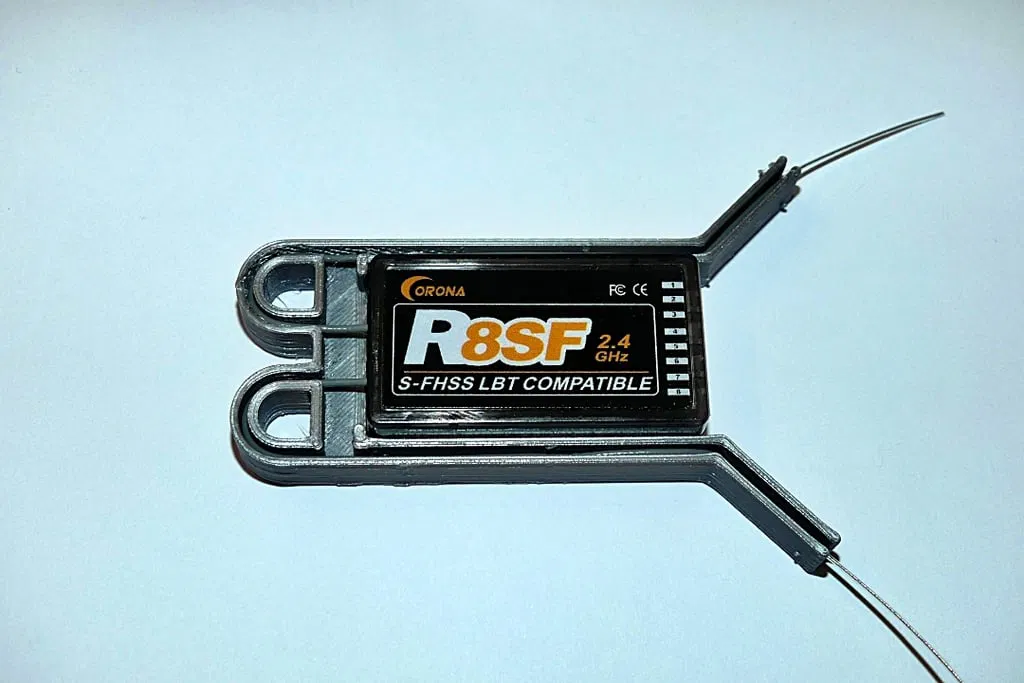 In 3D vỏ bảo vệ cho bộ điều khiển thu tín hiệu Corona R8SF. Dễ dàng in ấn với máy Creality Ender 3, sử dụng nhựa PLA, TPU hoặc PET với cài đặt infill 15% và độ phân giải 0.2. Không cần rafts hay supports, giúp tiết kiệm vật liệu và thời gian.