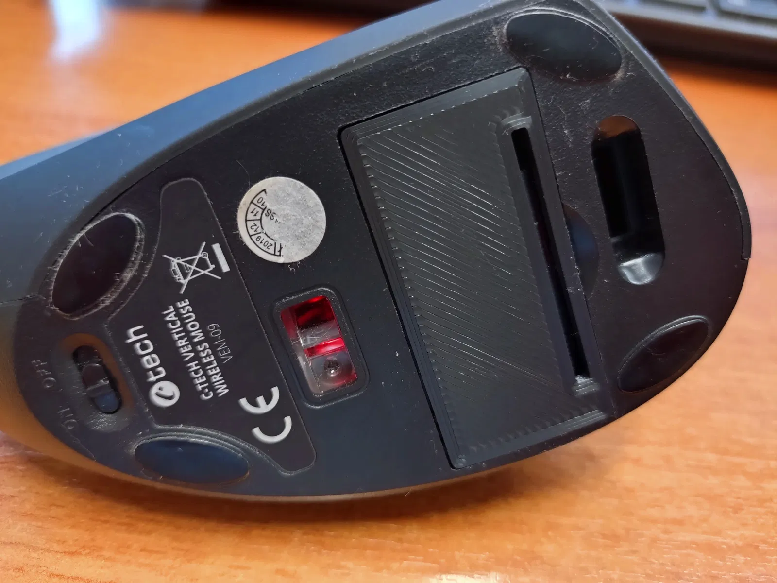 Mô hình này được in bằng PLA, đầu phun 0.4mm, lớp dày 0.10 mm. Đây là bản sao 1:1 của nắp pin chuột dọc C-Tech VEM-09.