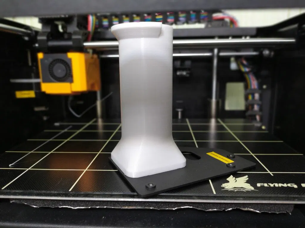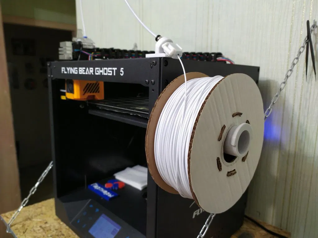 Giá đỡ sợi nhựa cho máy in FBG5, làm từ tấm tiêu chuẩn của bộ đùn. Phù hợp cho những ai đã độ lại sang bộ đùn Direct. In không cần Rafts và Supports, độ phân giải 200, mật độ ruột 20, sử dụng Filament PETG màu trắng.