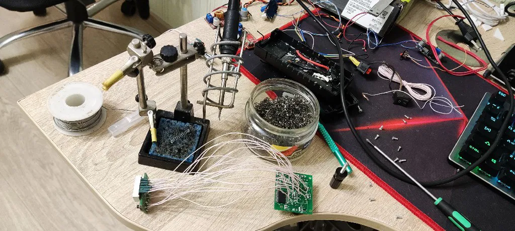 Phối lại trạm mà TUI đã làm, ở đây kết hợp mỏ hàn, máy sấy và máy đo điện áp, tất cả đều có vỏ kích thước tương tự như bộ nguồn máy tính. TUI cũng đã làm giá đỡ