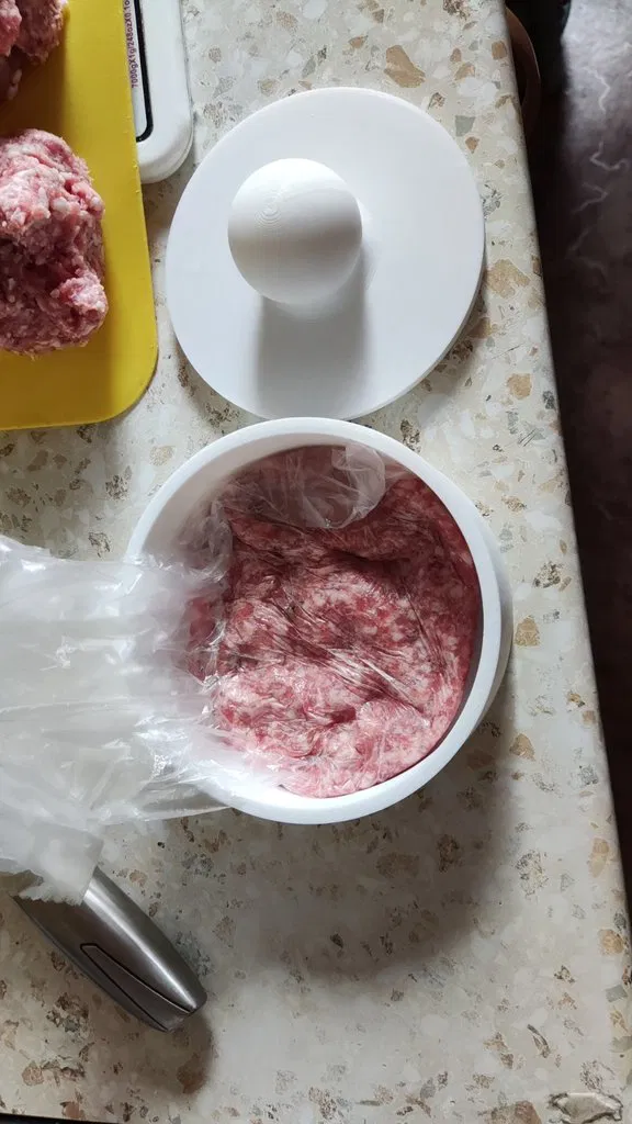 Cái khuôn ép chả burger này là để làm chả cho hamburger đó. In ra bằng nhựa PETG, không cần support hay rafts, độ phân giải 100, infill 20 là đẹp. Vừa làm bếp vừa vui!