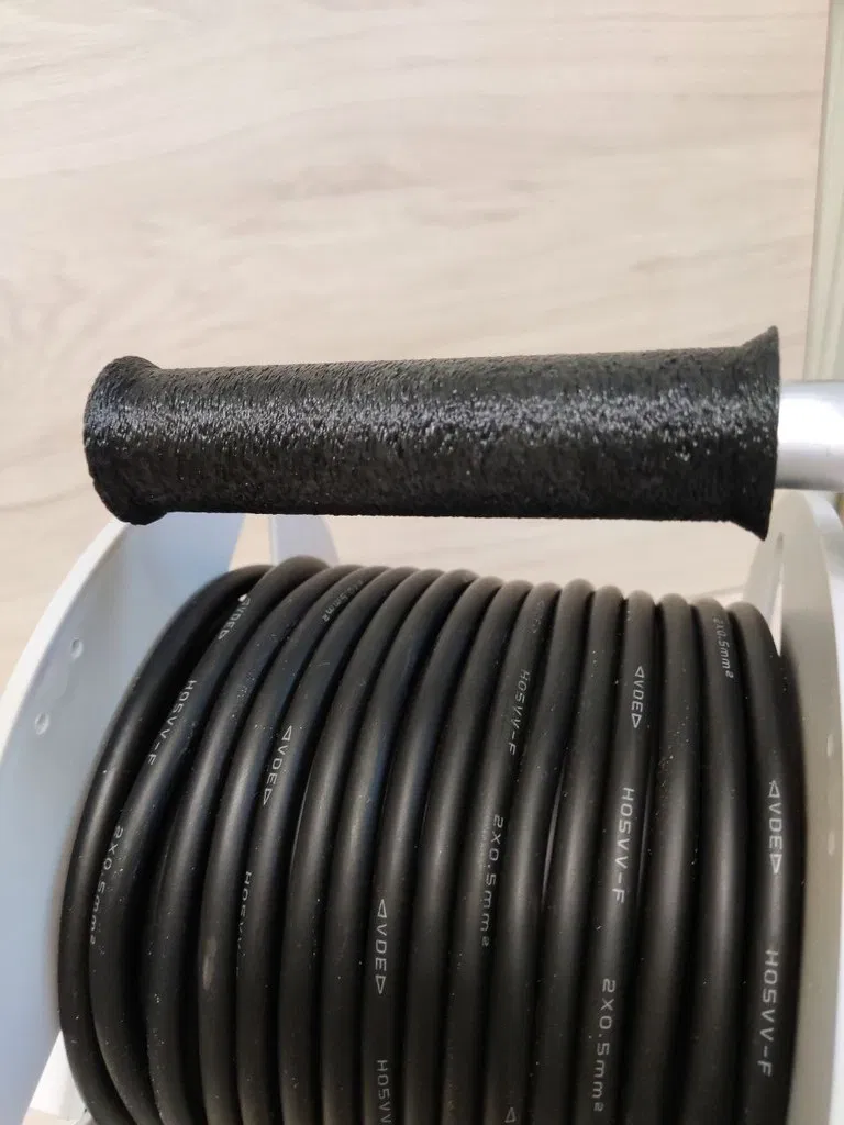 Tôi lấy cuộn dây nhựa có thể tháo rời làm cơ sở. Mua một ổ cắm điện và một ống nhôm. Thanh ren để siết chặt là 6mm. Muối được đổ đầy vào ống, bịt kín, nung nóng trên bếp hoặc bằng đèn khò rồi uốn cong. Cẩn thận đừng để bị bỏng, nhôm nóng rất nhanh. Tay cầm và nút bịt bên trong bằng TPU. Độền (infill) là 20% cho mọi thứ.
