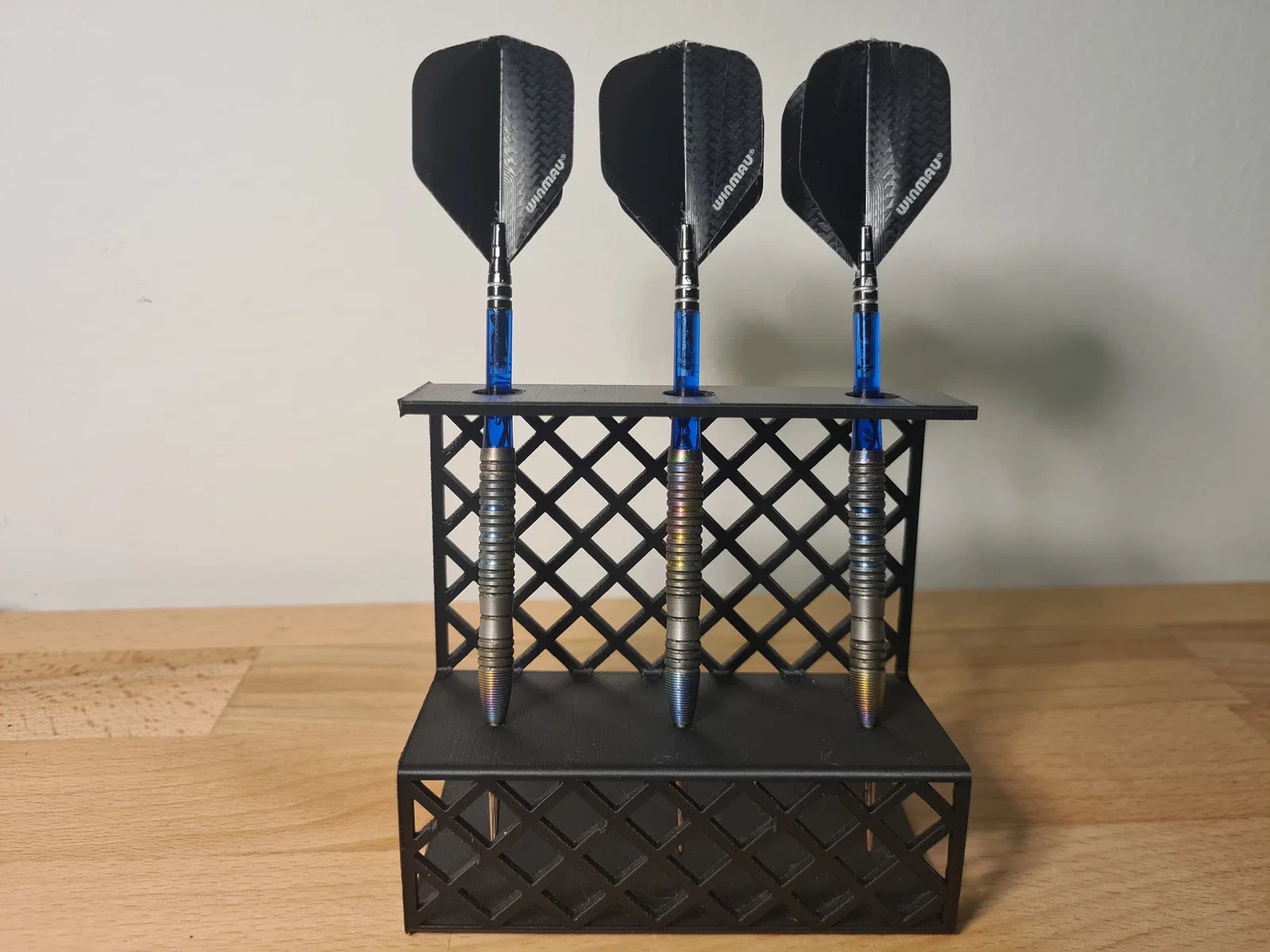 Giá đỡ phi tiêu đẹp mắt, thiết kế đơn giản cho ba cây phi tiêu sắt. In dễ dàng không cần support, chỉ khoảng 5 tiếng. Lưu ý chỉnh retraction trước khi in nhé!