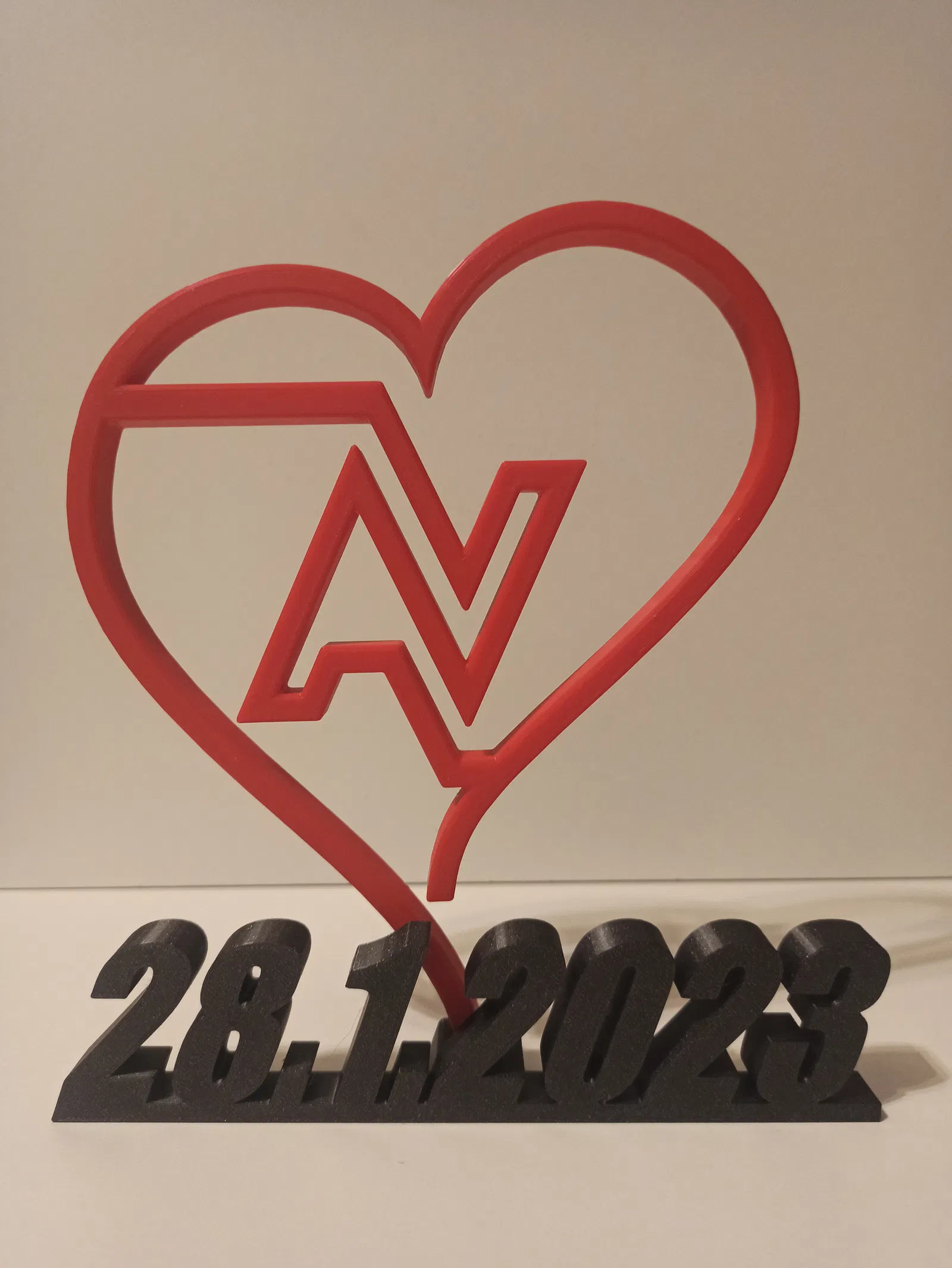Mô hình gồm hai phần lắp ráp: phần ngày tháng và logo trái tim với chữ cái viết tắt. File IPT đi kèm để bạn tùy chỉnh dễ dàng. Thích hợp cho Lễ Tình Nhân, kỷ niệm.