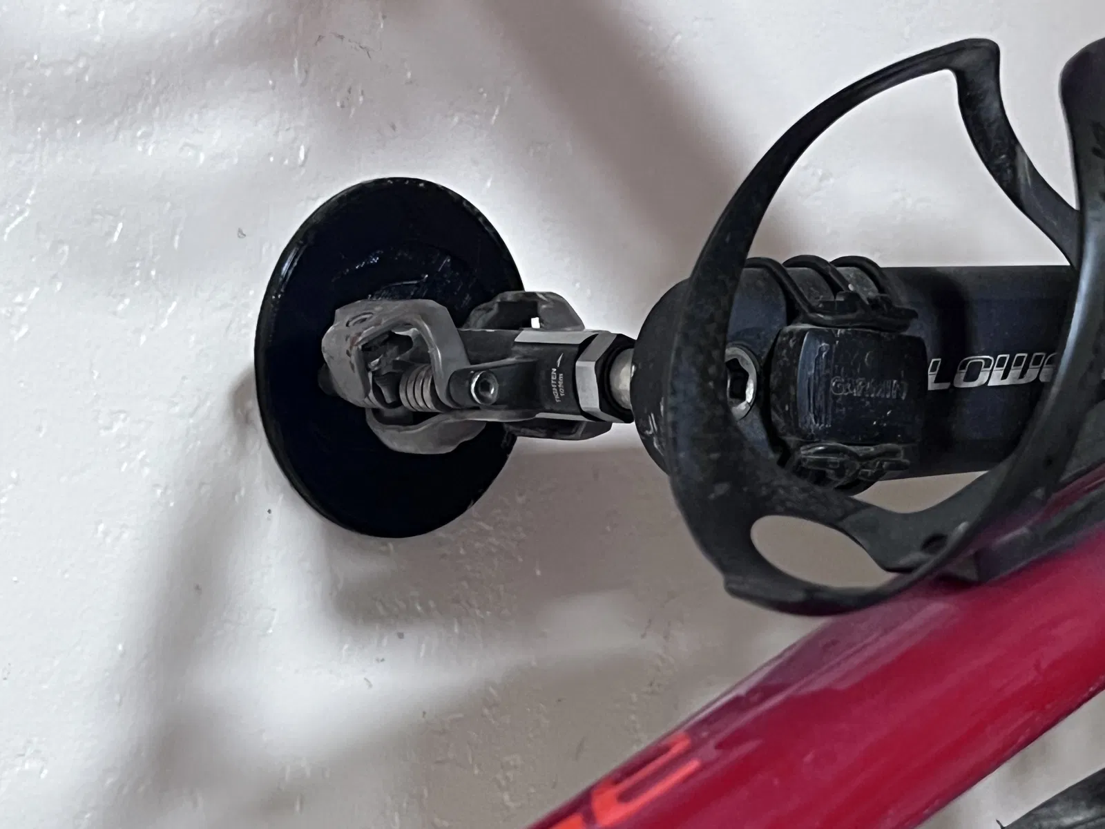Tấm đệm TPU đơn giản để bảo vệ tường khỏi bàn đạp xe đạp của bạn. Xe đạp được treo bằng móc treo tường.