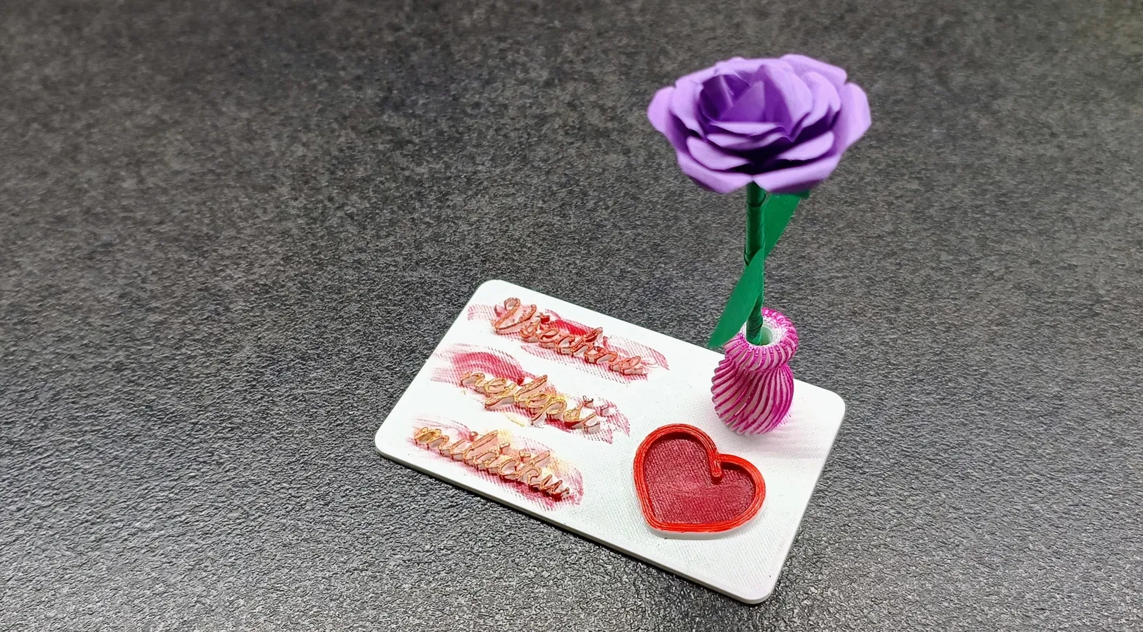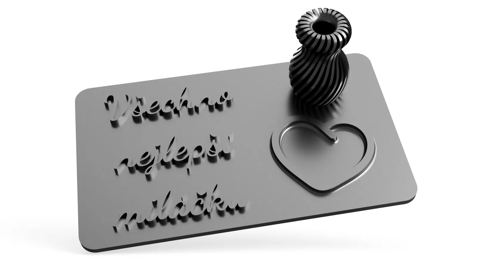 Thiệp kỷ niệm/sinh nhật có hình trái tim và lọ hoa nhỏ. Có chữ tiếng Séc và tiếng Anh. Dùng cho ngày Valentine.