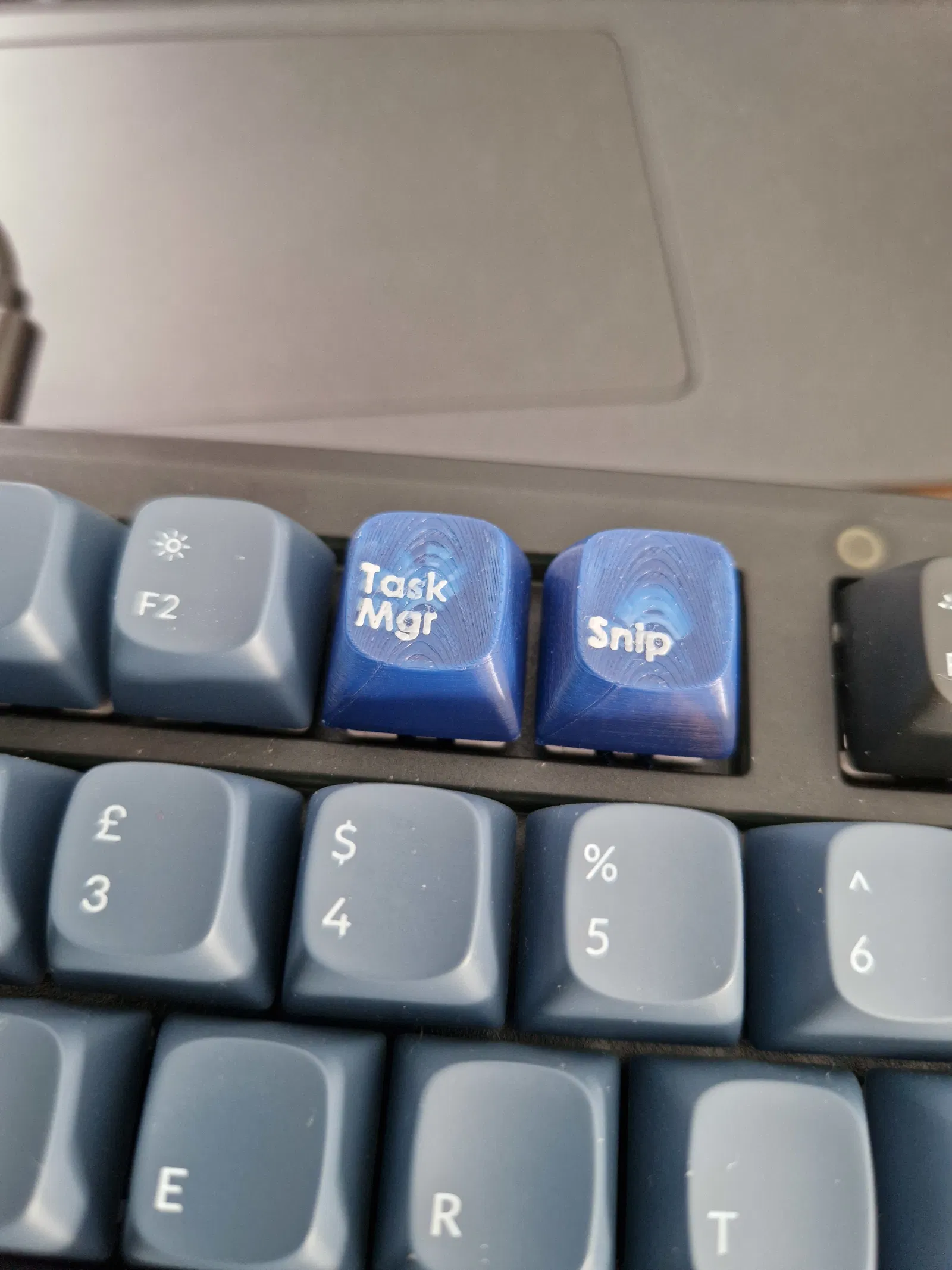 Bộ keycap CherryMx tùy chỉnh dành cho hàng trên cùng của bàn phím Keychron V5C1, bao gồm các phím chức năng như Sleep, Mute, Snip và Task Manager. In 3D theo yêu cầu, giữ nguyên ký tự tiếng Anh để dễ nhận biết. Phù hợp cho người dùng Keychron muốn cá nhân hóa bàn phím của mình.