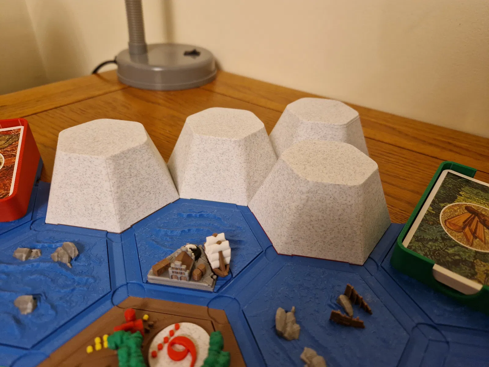 Đây là mấy cái nắp che ô tài nguyên cho bàn cờ Catan từ tính của Dakanzla, giúp tăng tính bất ngờ khi chơi. Thiết kế khéo léo để vừa vặn, chỉ cần nhấc nắp ra là thấy tài nguyên. Mặc dù nhìn kỹ có thể đoán được nhưng nhìn chung là hoạt động tốt.