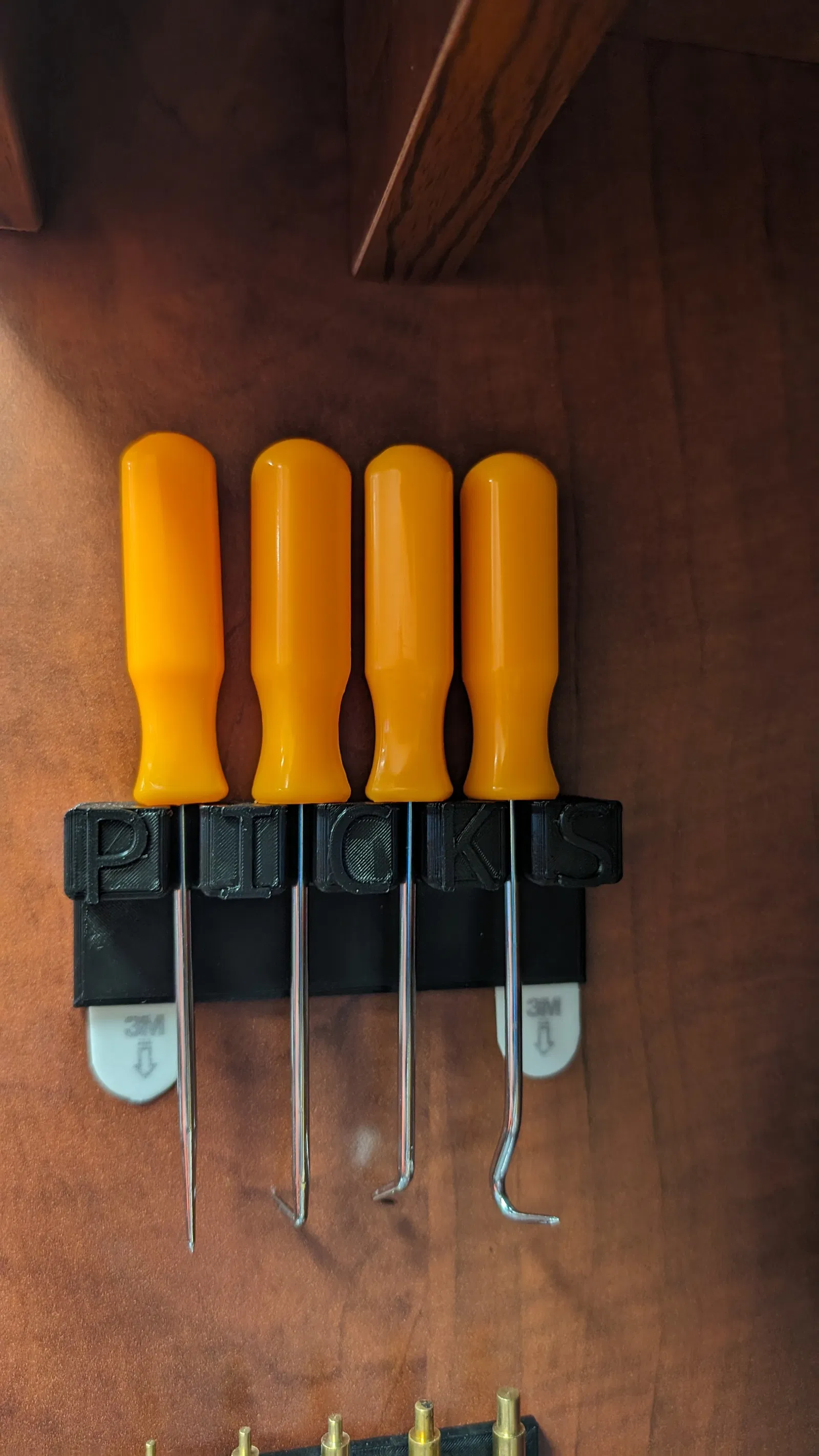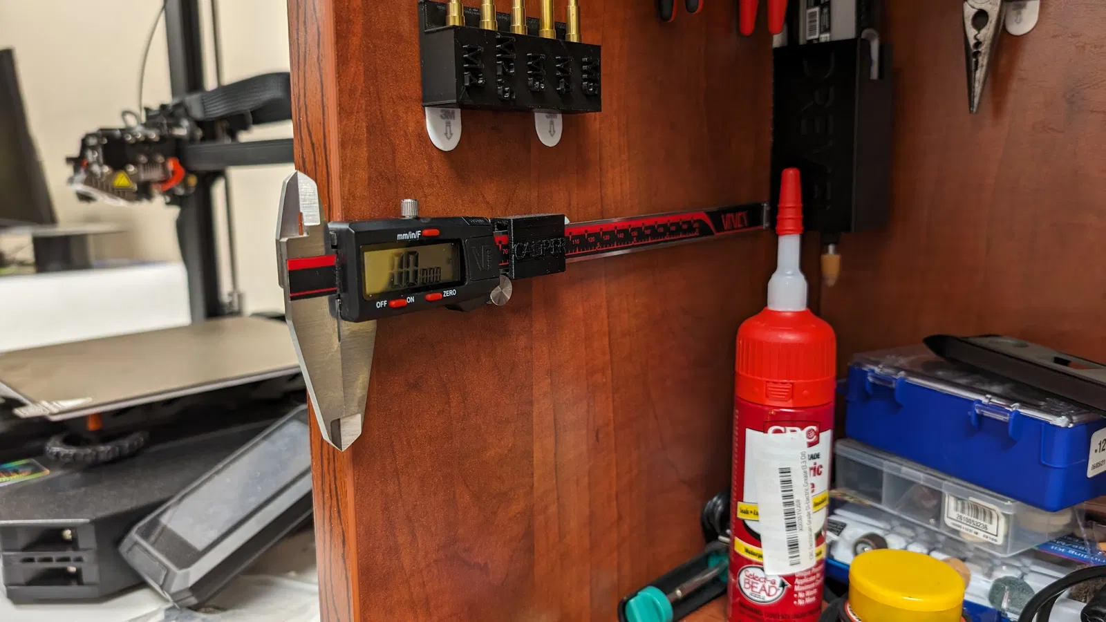Bộ khay đựng đồ nghề điện tử đa năng, gắn gọn gàng trên bàn làm việc bằng miếng dán Command Strips. Có nhãn mác rõ ràng, giúp bạn dễ dàng cất giữ và tìm lại đồ nghề. In bằng PLA đen, độ đặc 15%.
