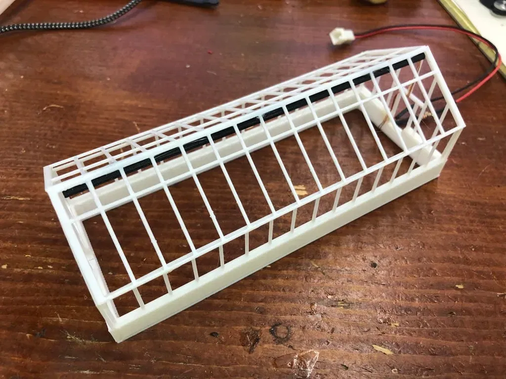 Lắp ráp dán một đầu vào đáy rồi hai bức tường sau đó là đầu thứ hai. Cuối cùng là hai tấm mái. Các băng ghế không được dán vào để có thể trang trí.