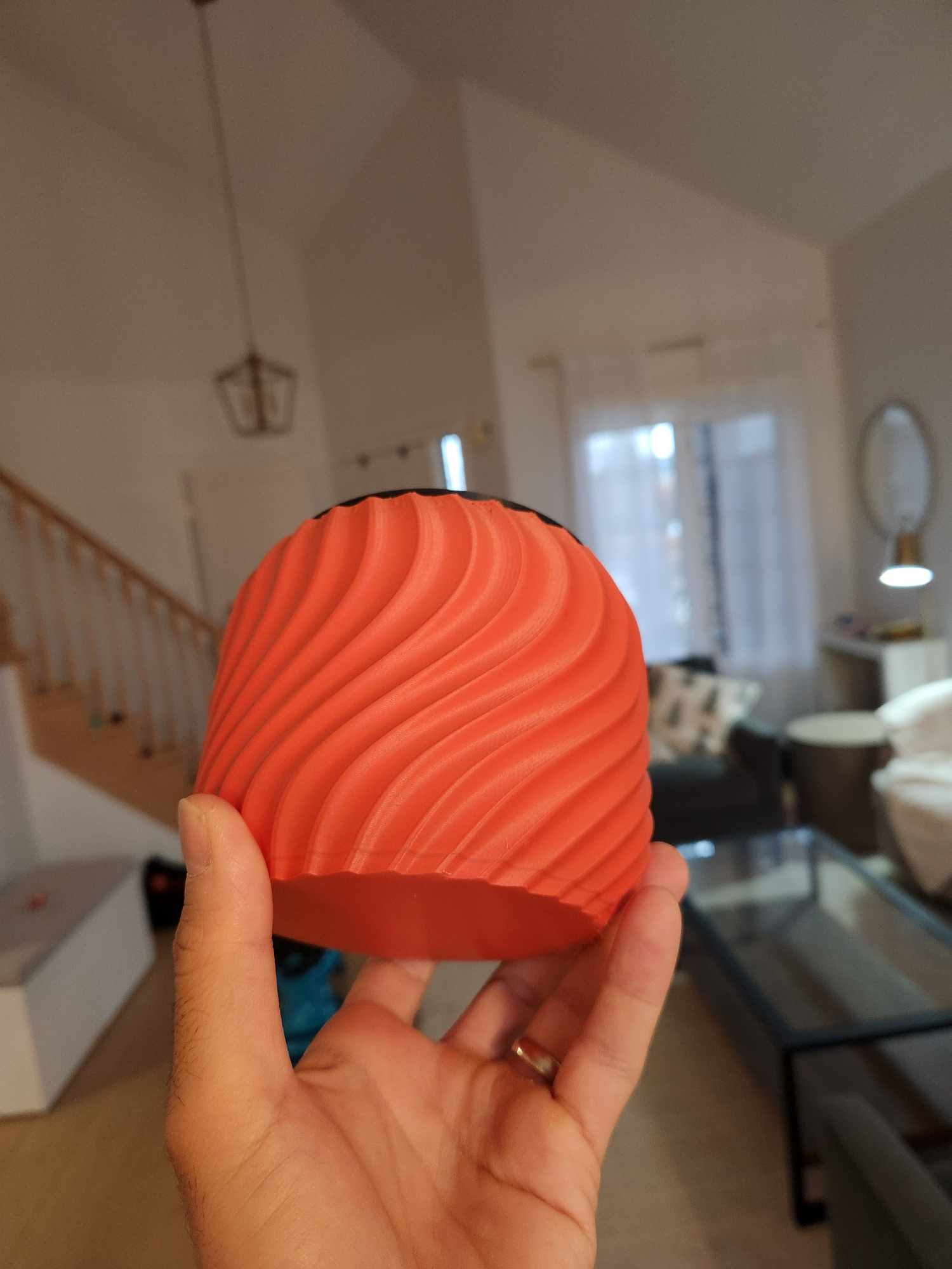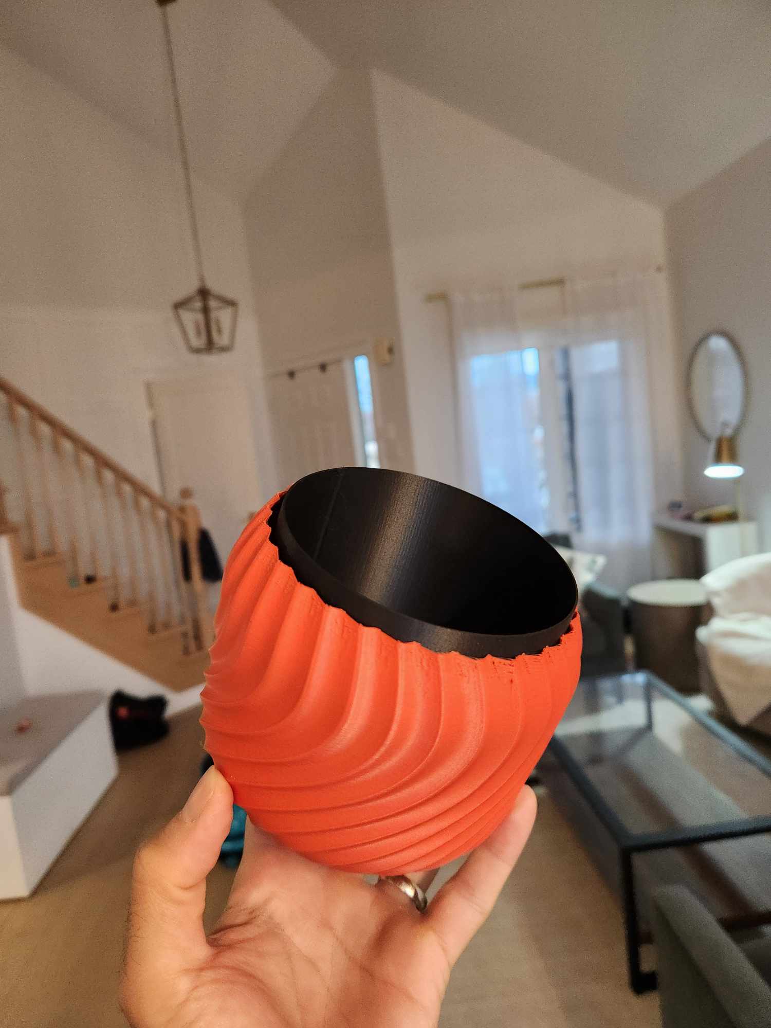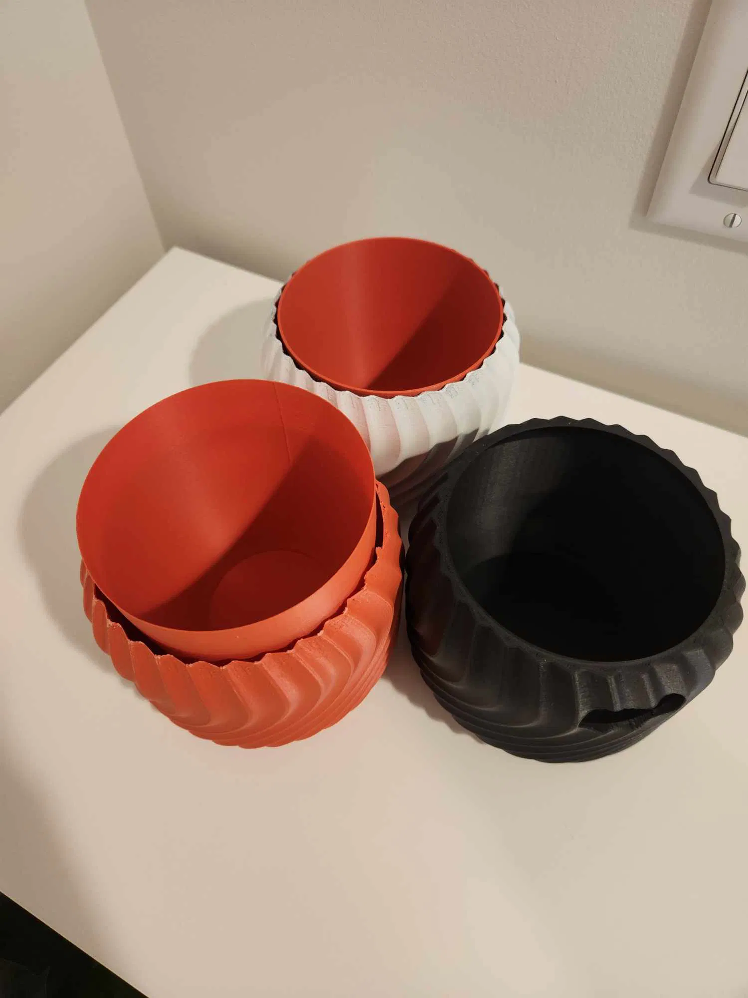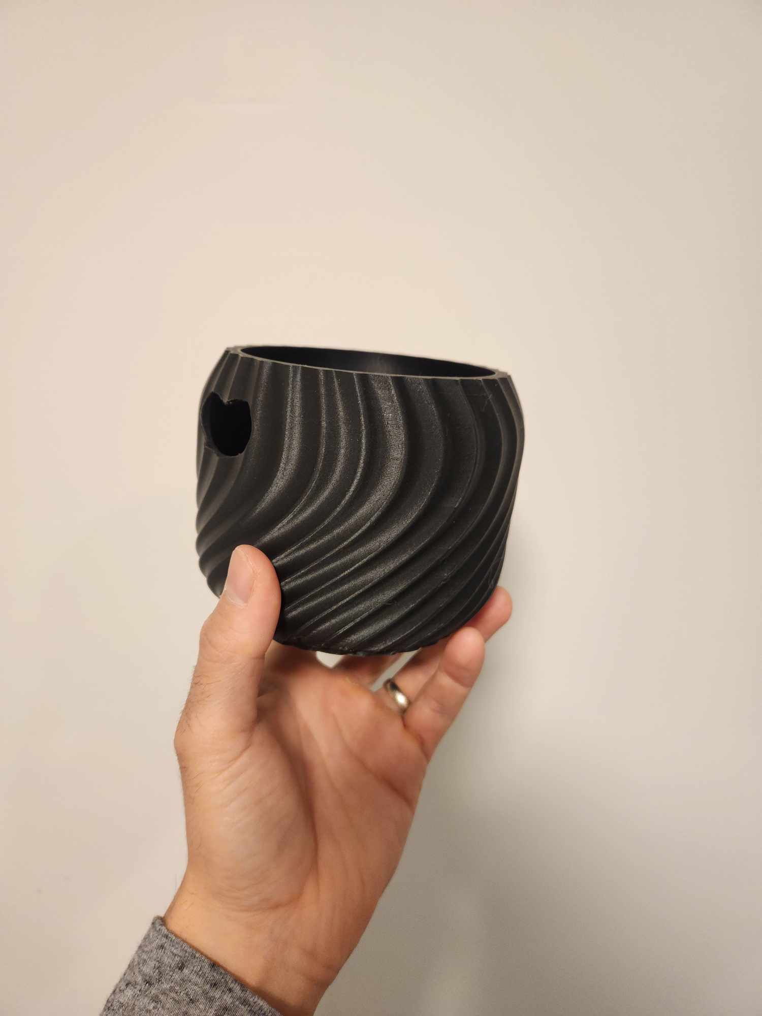 Mô hình có 2 phần. Phần đầu là cái nồi PLA chỉ dày 1 lớp, chứa đất và cây. Làm mỏng vậy đó, nước sẽ từ từ thấm vô đất.