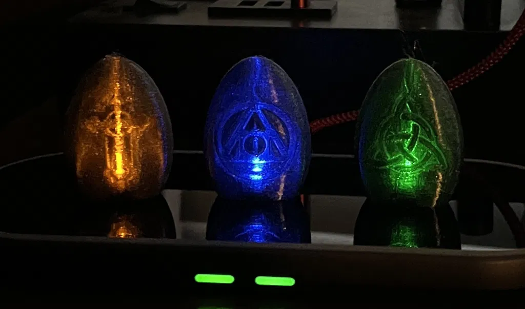 Bộ 3 viên đá giả kim thuật "thần kỳ" phát sáng khi đặt gần nguồn điện không dây. In bằng PLA trong suốt, hoàn hảo để lưu trữ bên trong Hộp Đồ Khóa Thuật Sư.