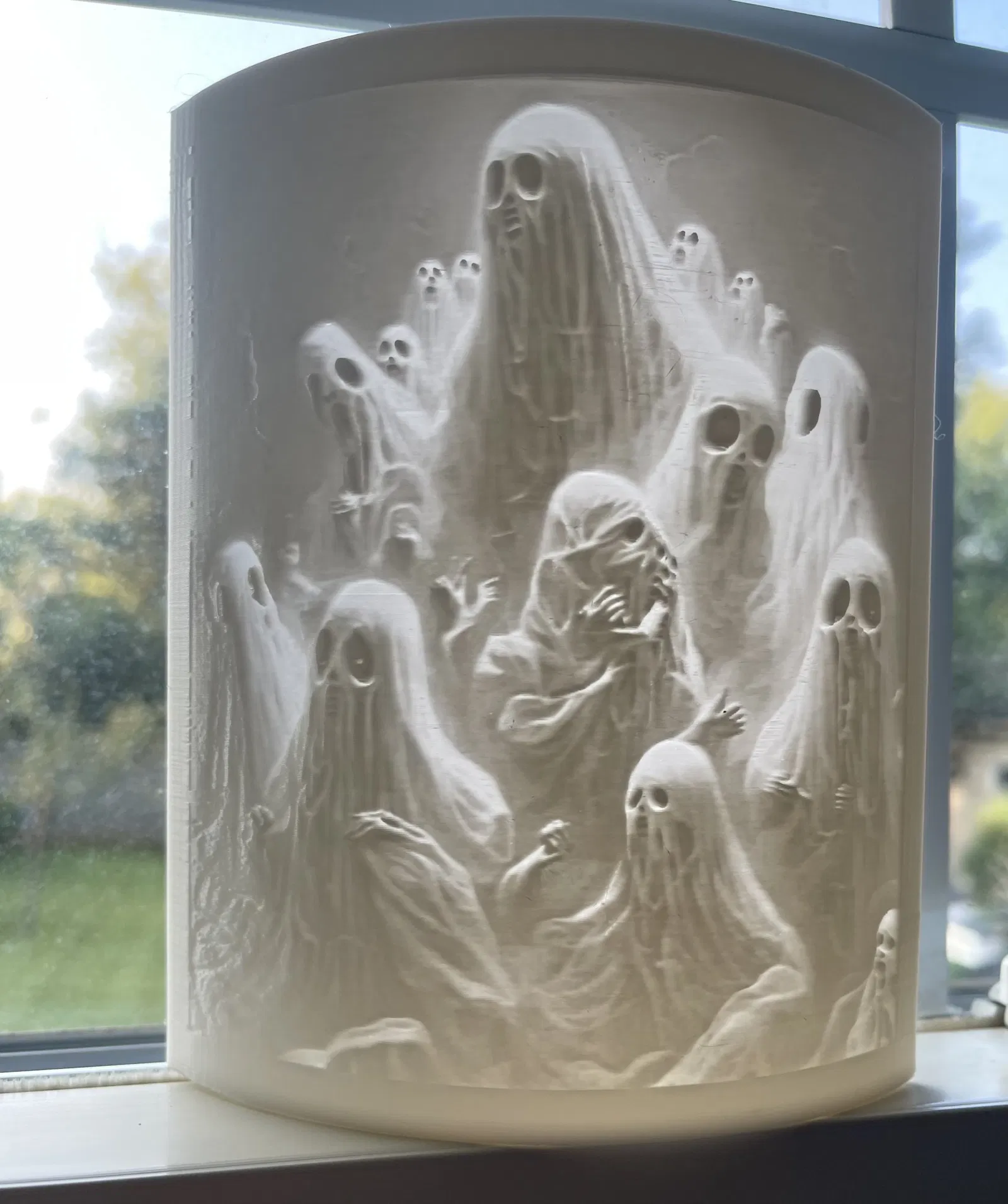 Hình ảnh của một số con ma trên bảng điều khiển Litphophane trước cho Nightlight. Cùng một đèn ngủ được đề xuất trên litphophanemaker.com