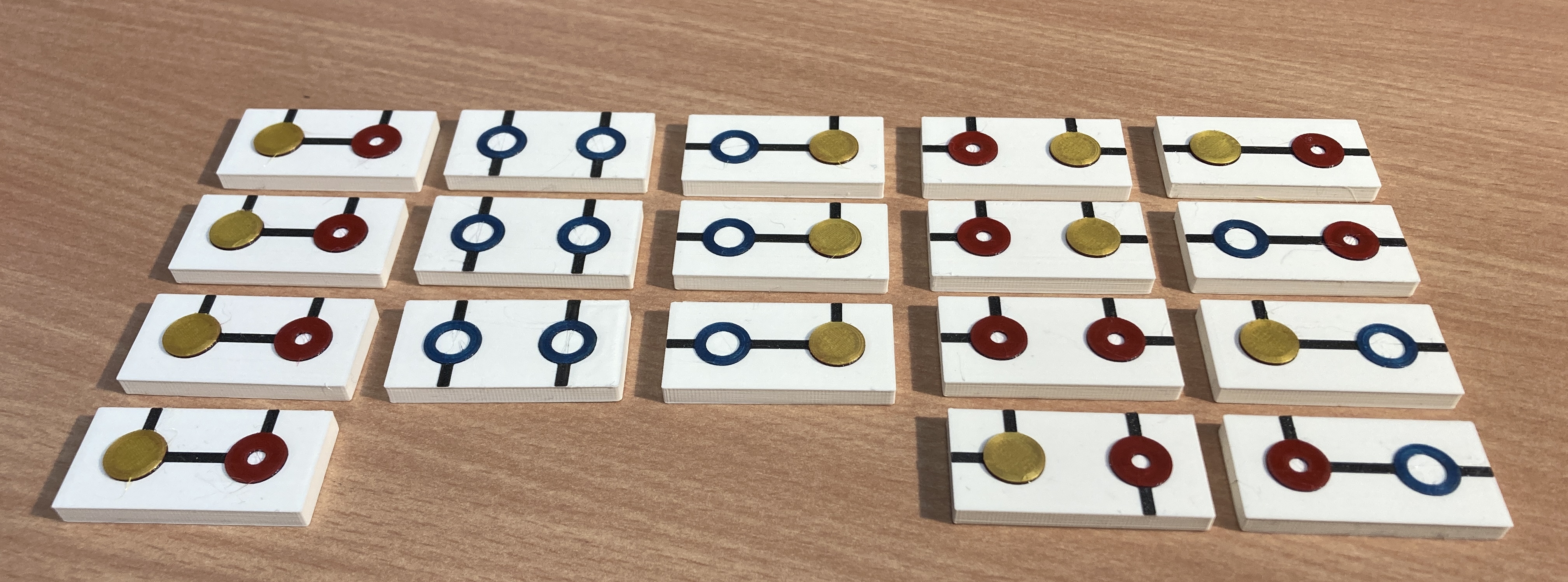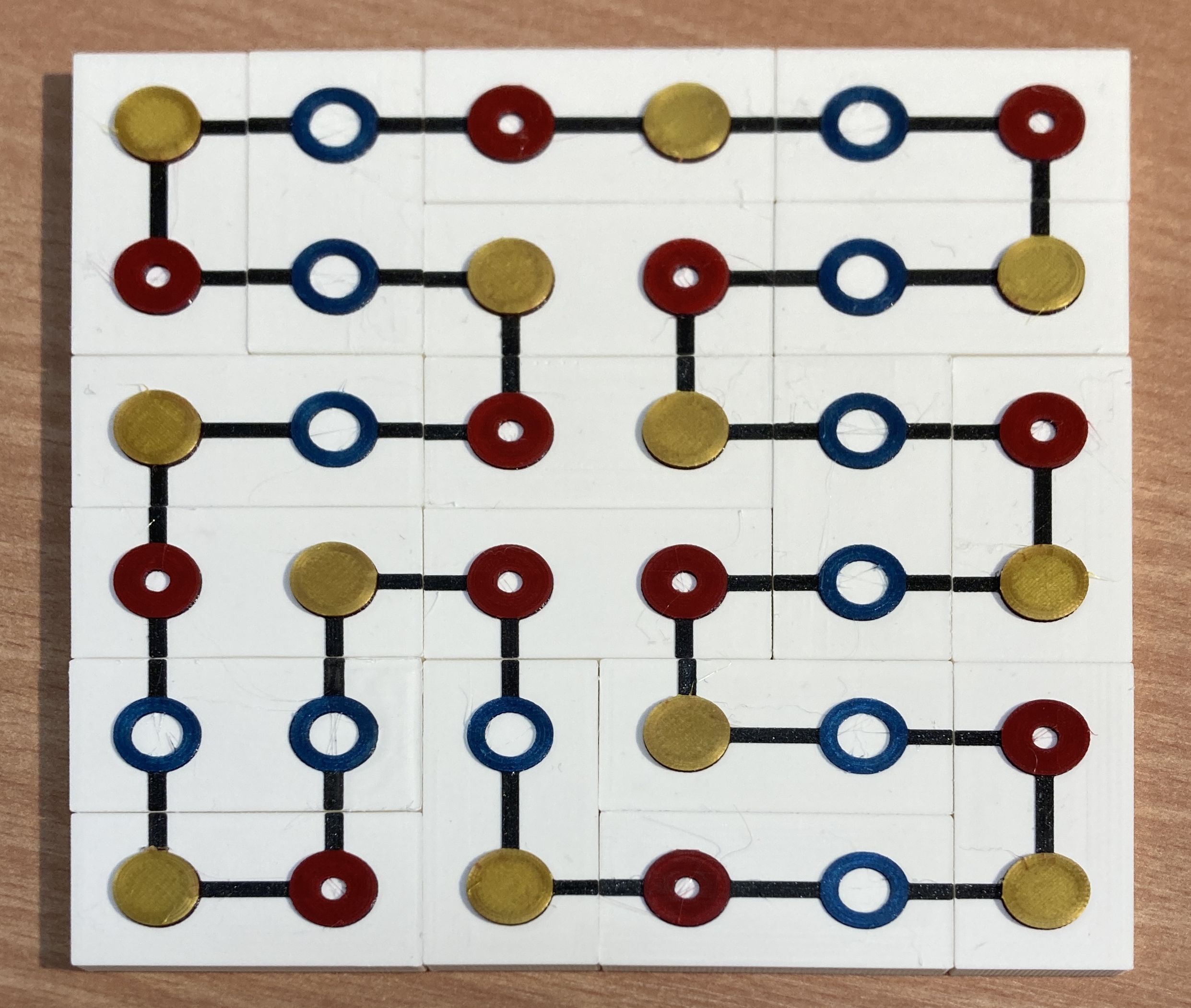 Các khối xếp hình cho trò chơi câu đố từ sách của Miloš Zapletal - Sách Câu Đố. Nguyên tắc của trò chơi xếp hình là sắp xếp các khối nhỏ lại với nhau để tạo thành một chiếc vòng cổ hoàn chỉnh, với các "viên đá quý" xen kẽ đều đặn với nhau.