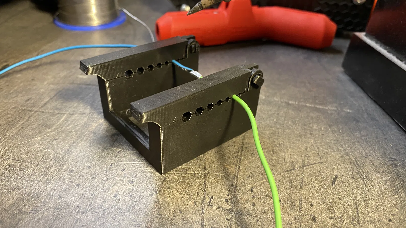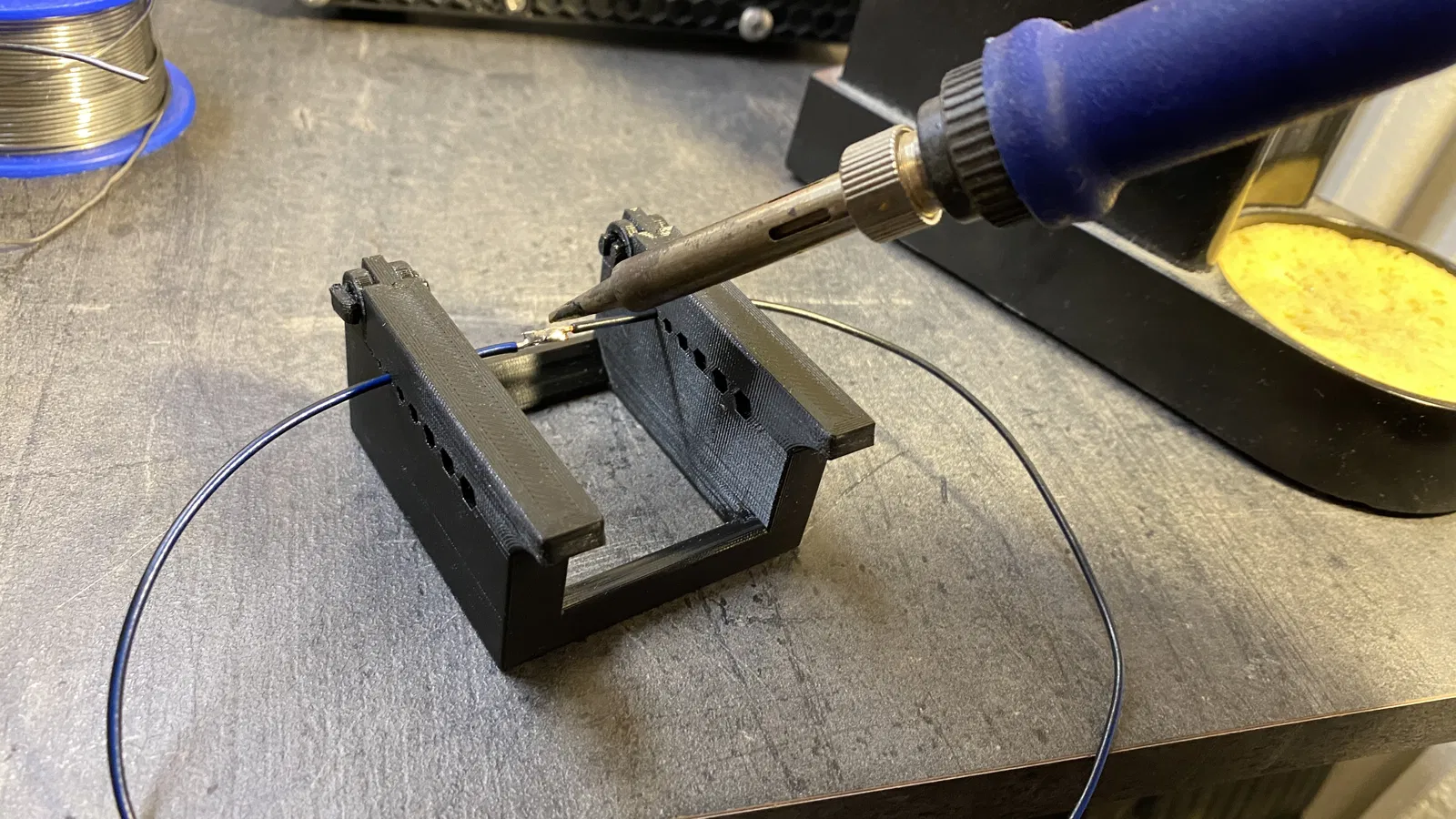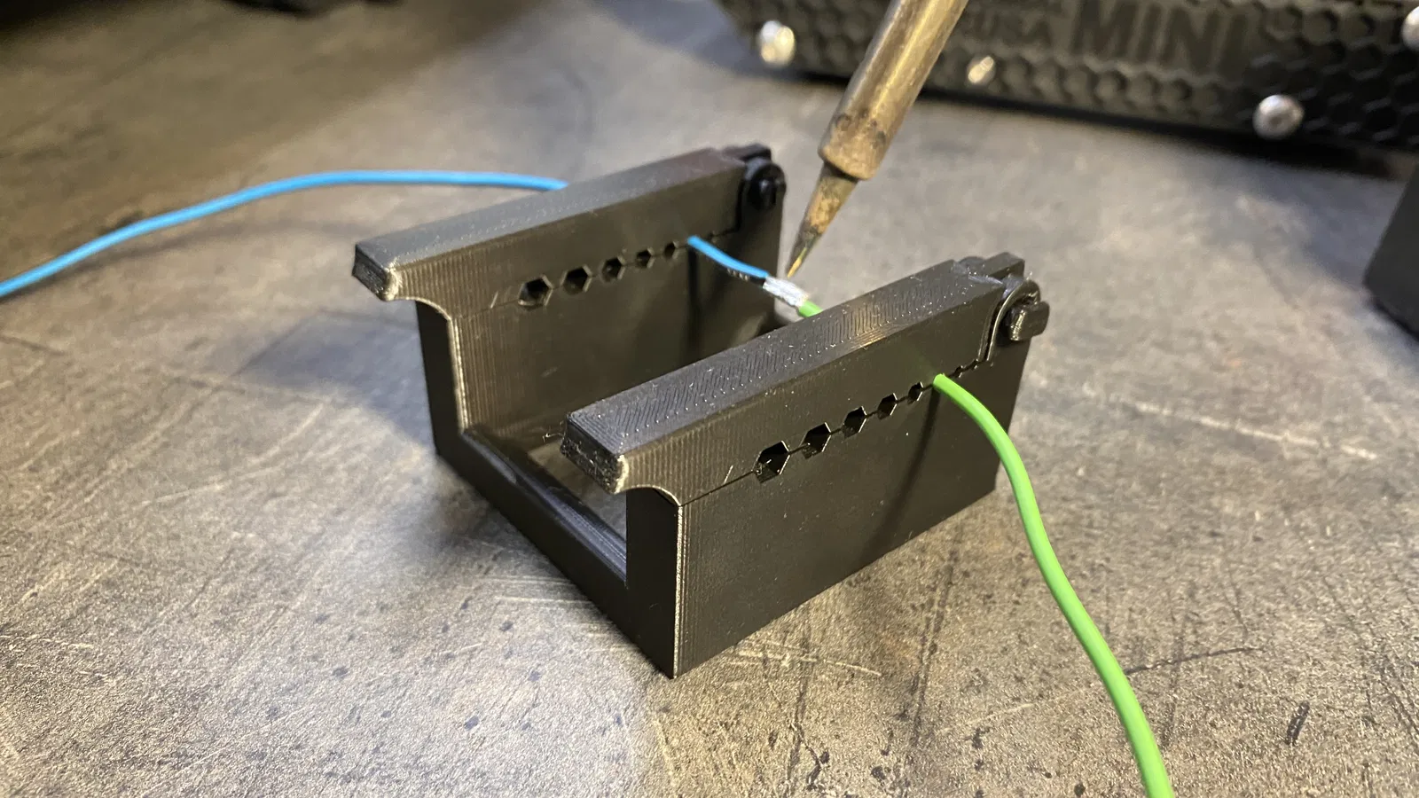 Có thể đặt một hộp thiếc nhỏ để nhỏ thiếc ở giữa.