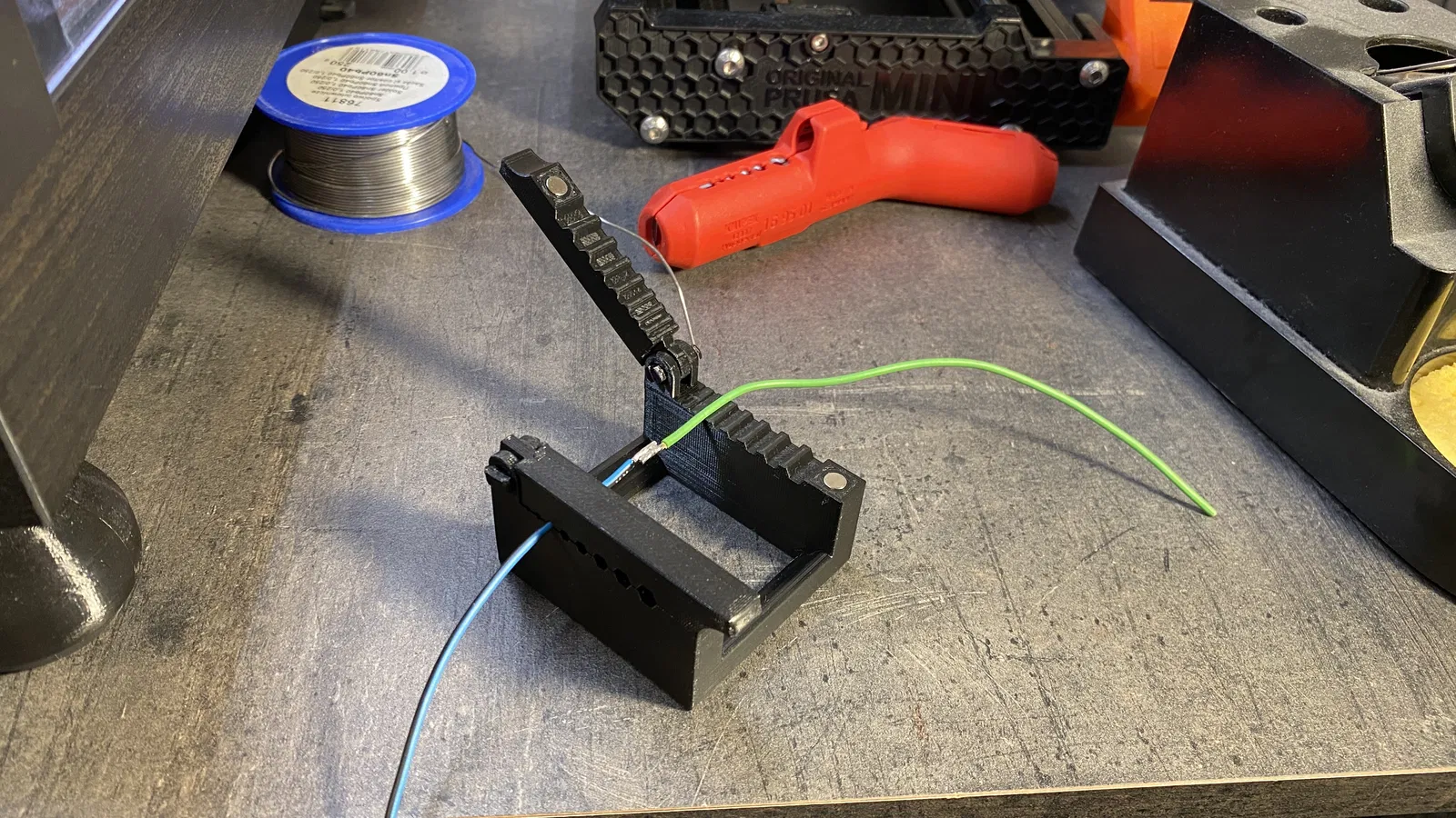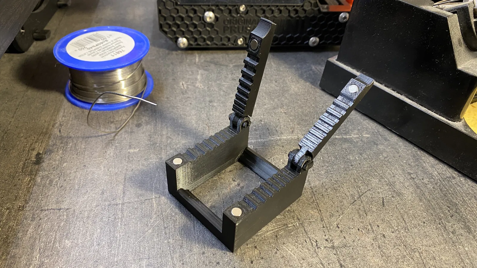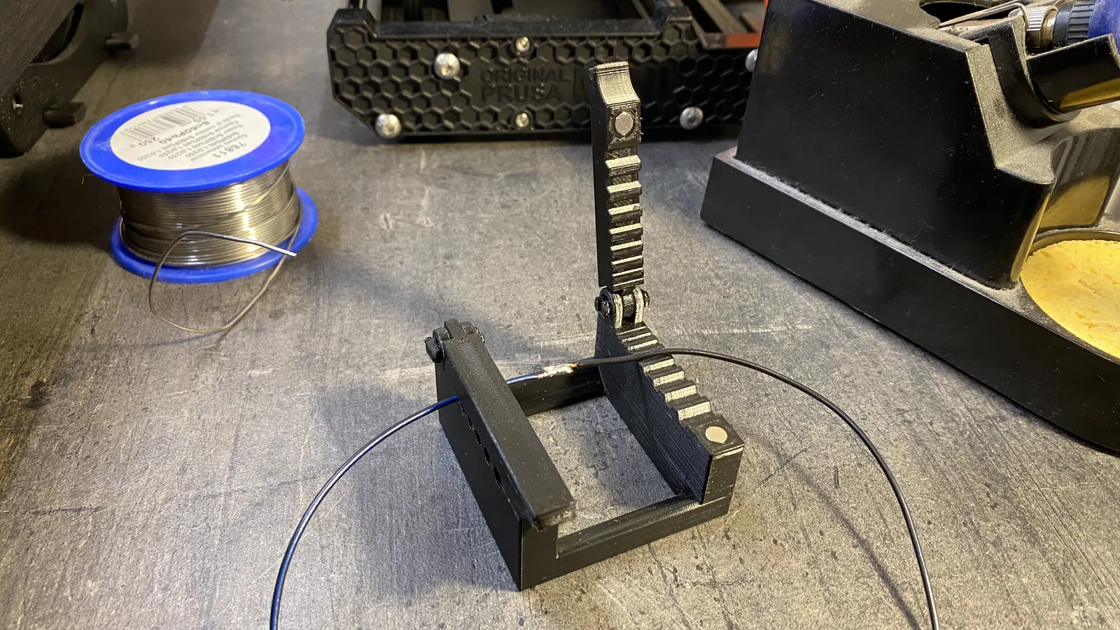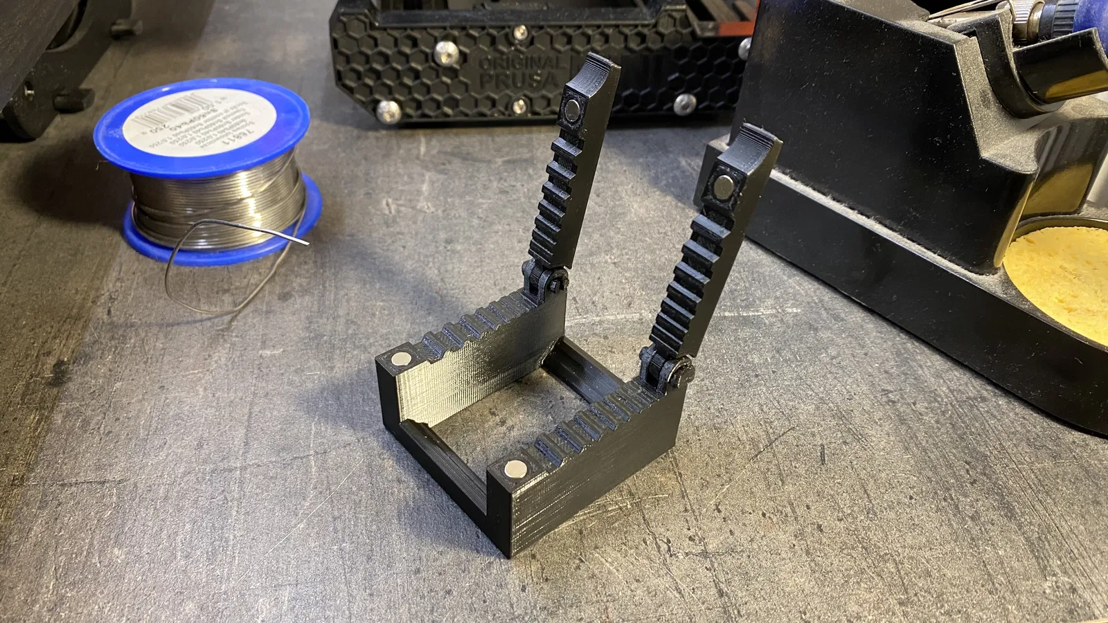 Kẹp giữ cáp nam châm tiện lợi cho việc hàn thiếc. Có thể dùng để kẹp cáp mỏng, đặt hộp thiếc hoặc thay thế bản lề bằng ốc M5. Kích thước nam châm: đường kính 5mm, cao 3mm.