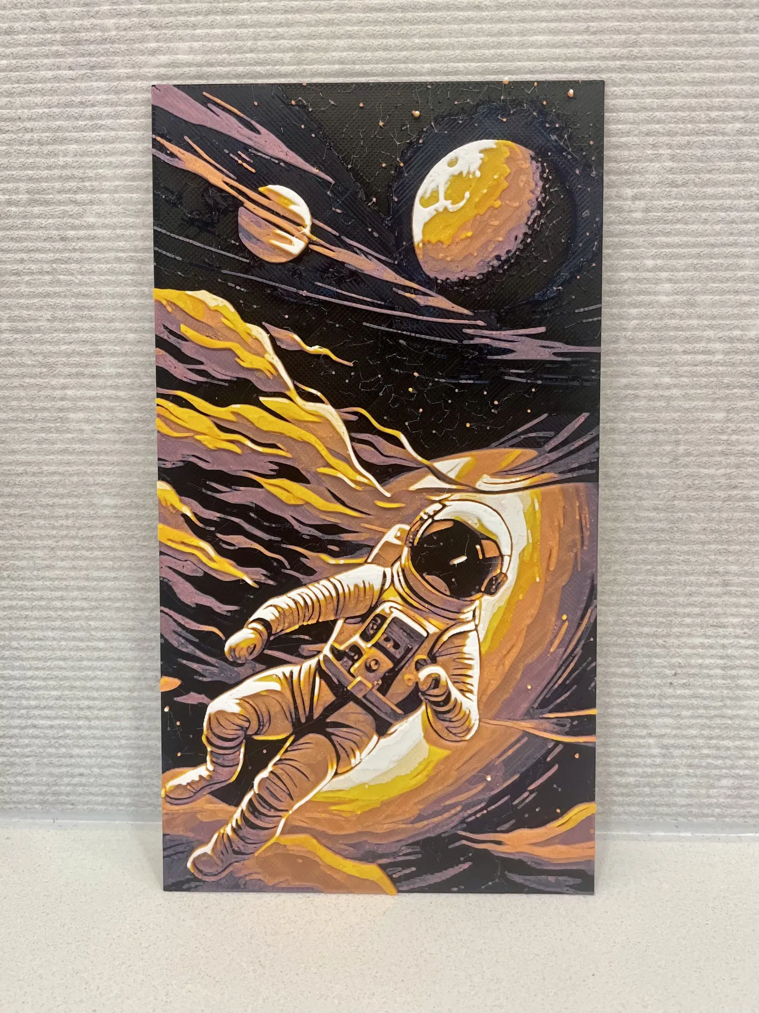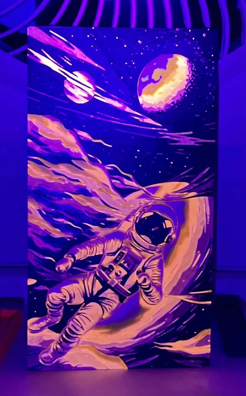 Phi hành gia đi dạo trong không gian với màu sắc sống động
