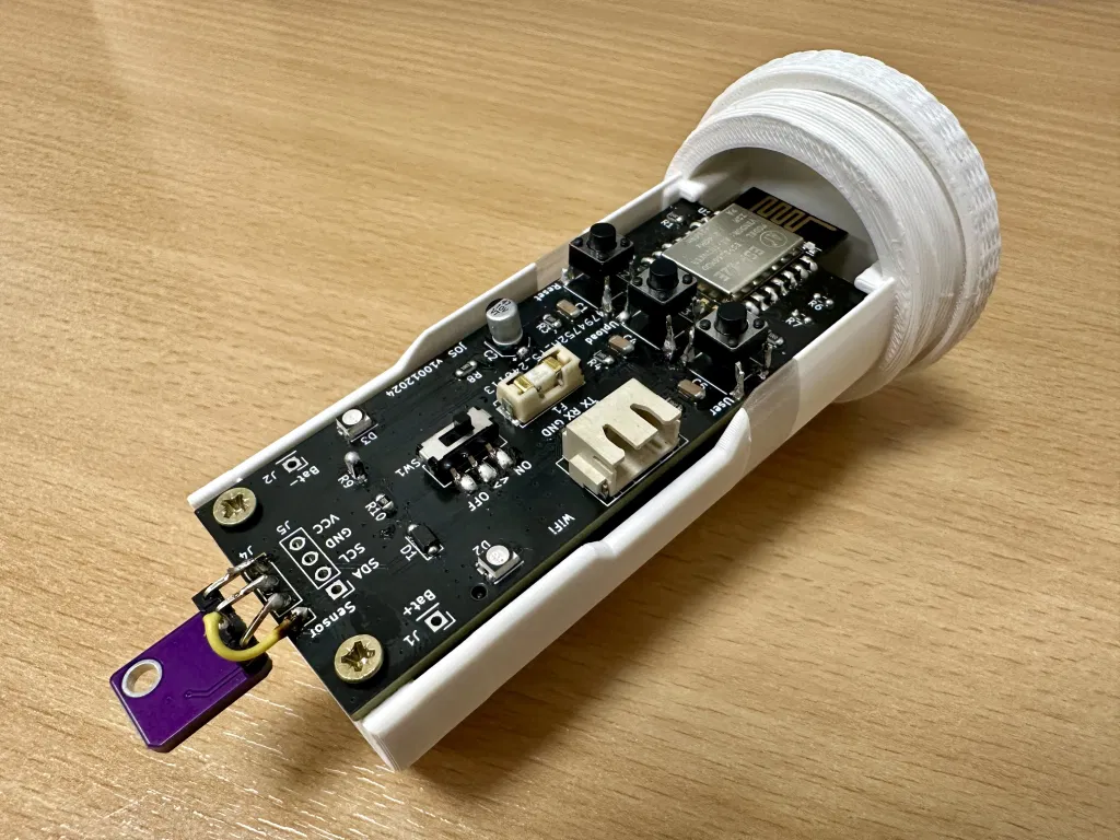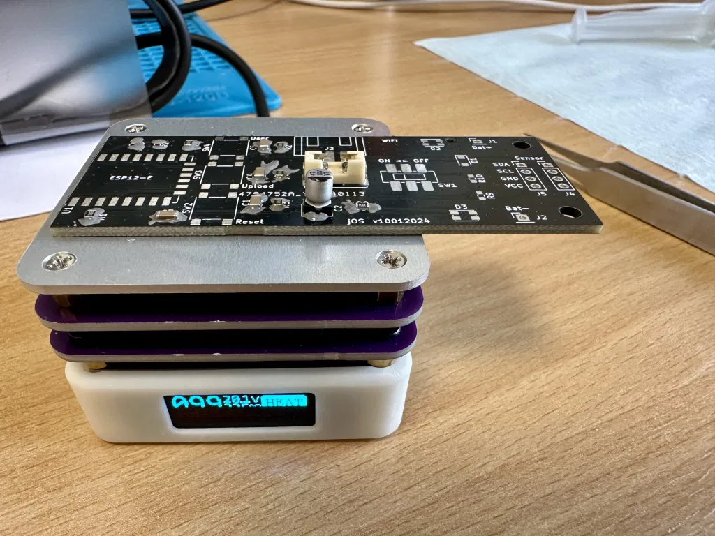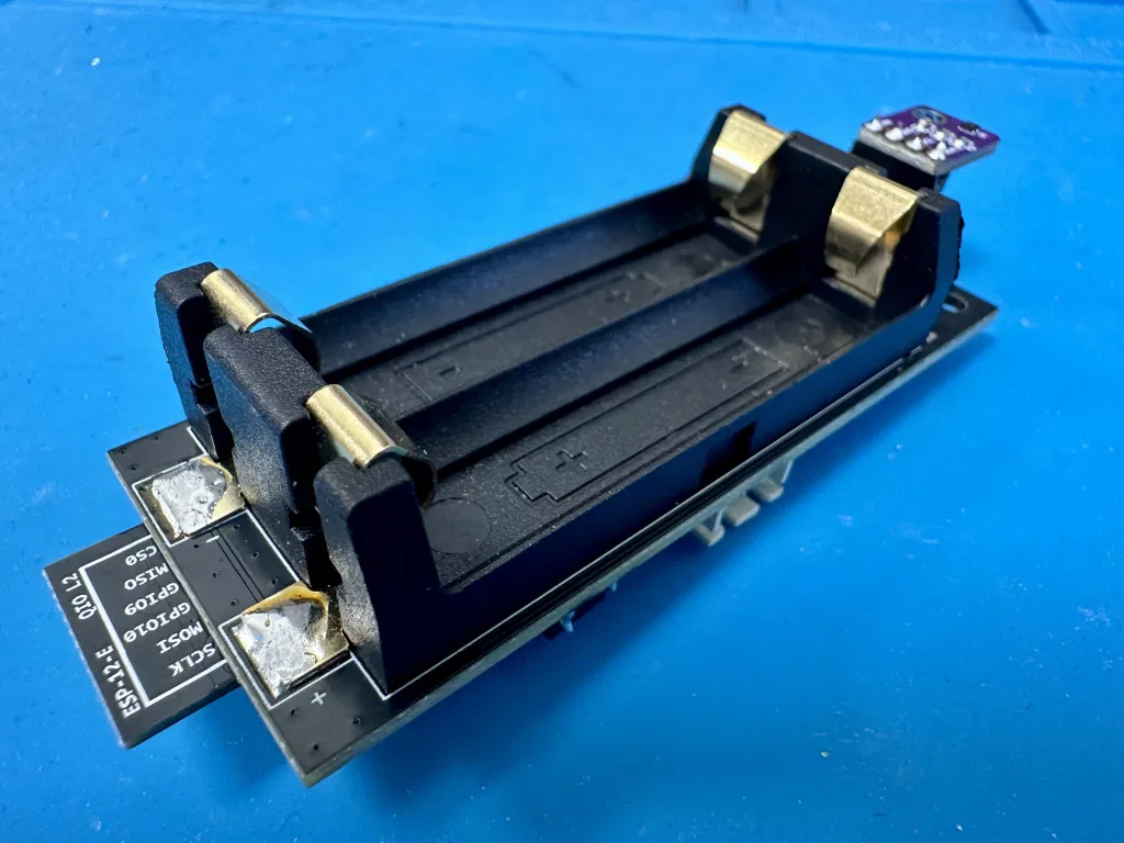 Có ESP-12E (ESP8266) để kết nối WiFi, dùng hai viên pin AA. Nó sẽ dùng được lâu vì MCU này sử dụng chế độ ngủ.